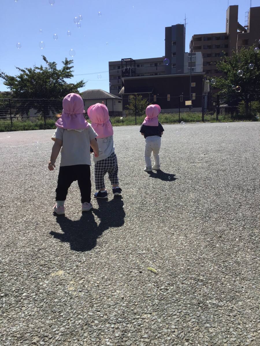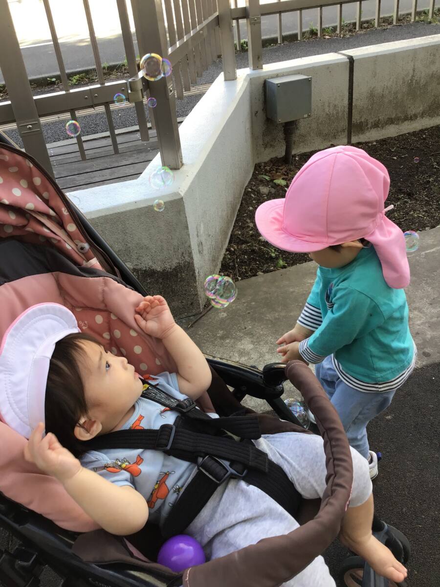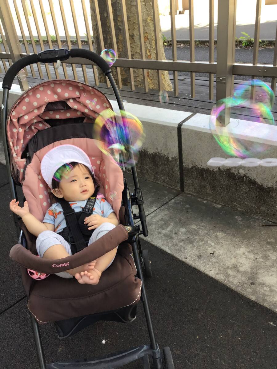 上手にスティックを振ってシャボン玉を作ることが出来ていますね♪