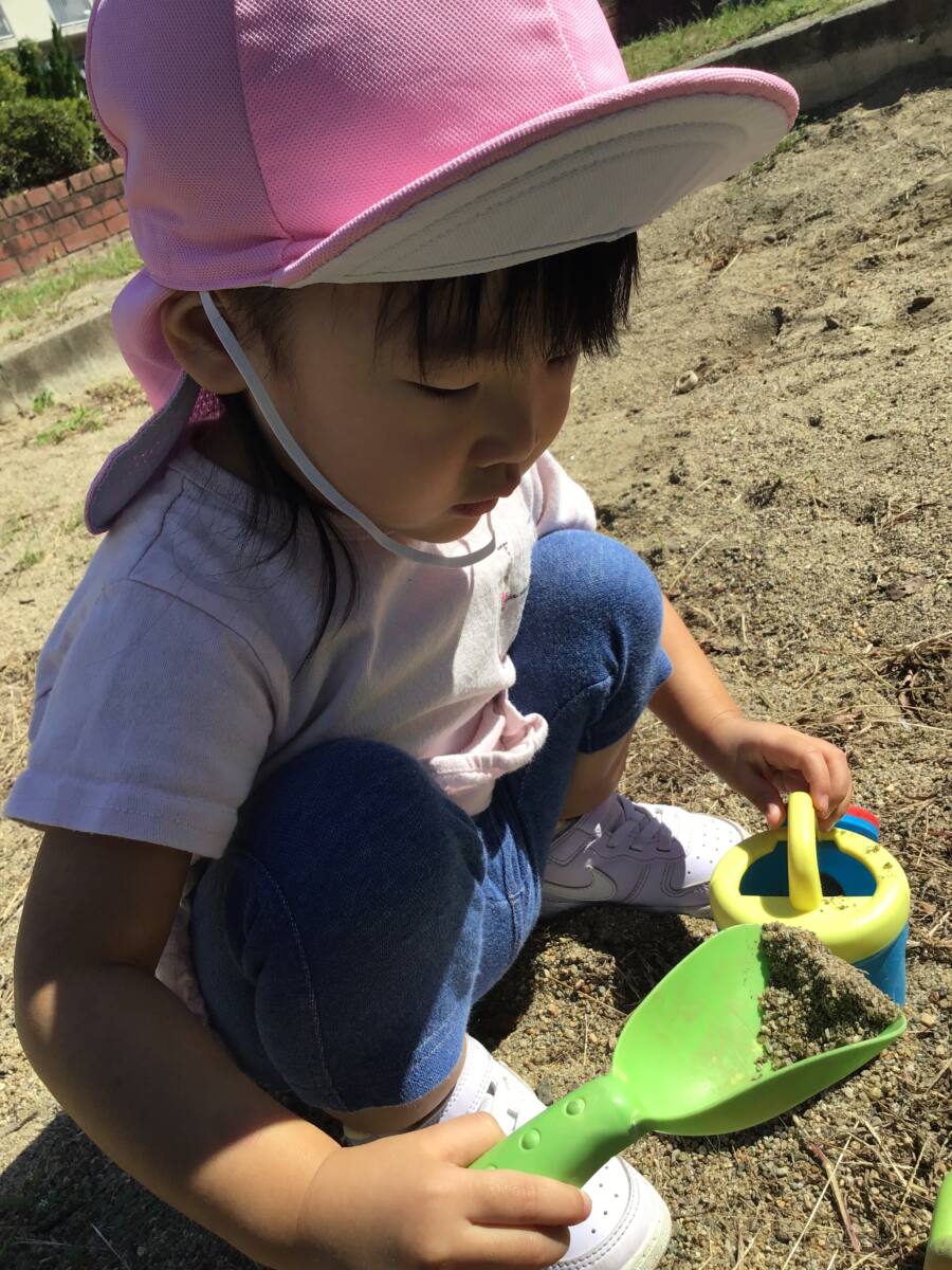 スコップで土を掘ってバケツに入れたり、小さなお山を作ったり🎶✨