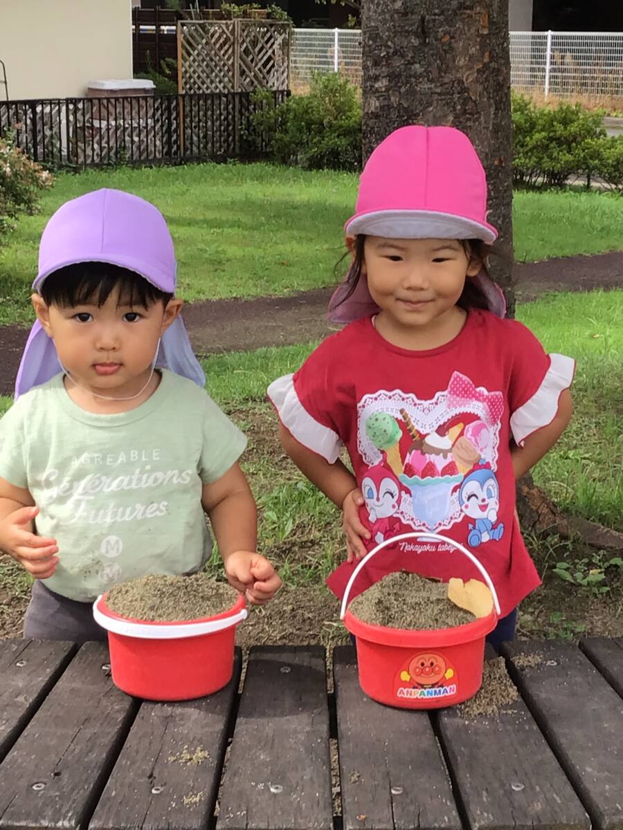 雨で土が湿っていたので型抜きやケーキ作りが上手に出来ました✨