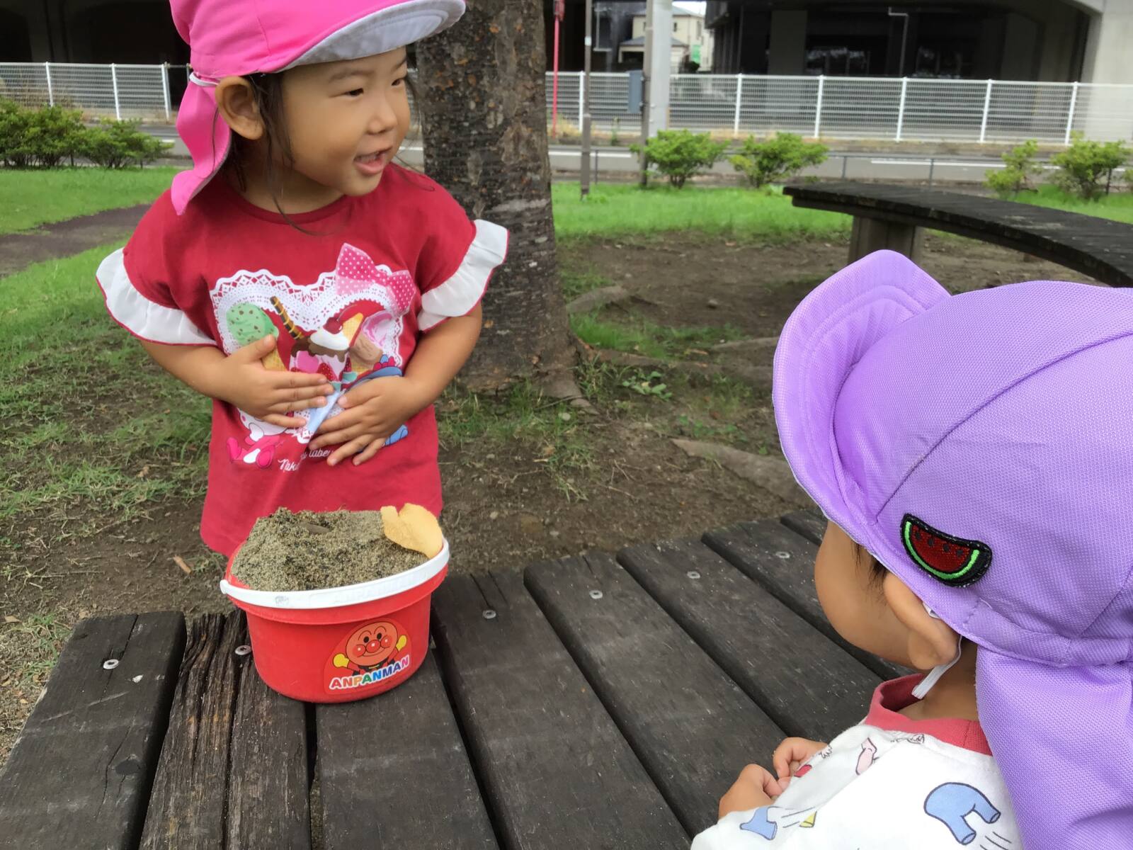 公園に到着するなり砂遊びに夢中のお子様たち♡