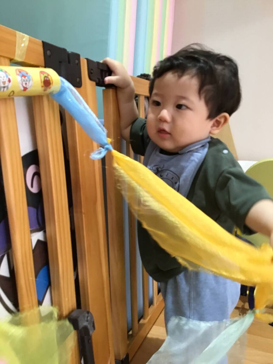ロールから布がどんどん出てくる玩具があることに気づき興味津々✨