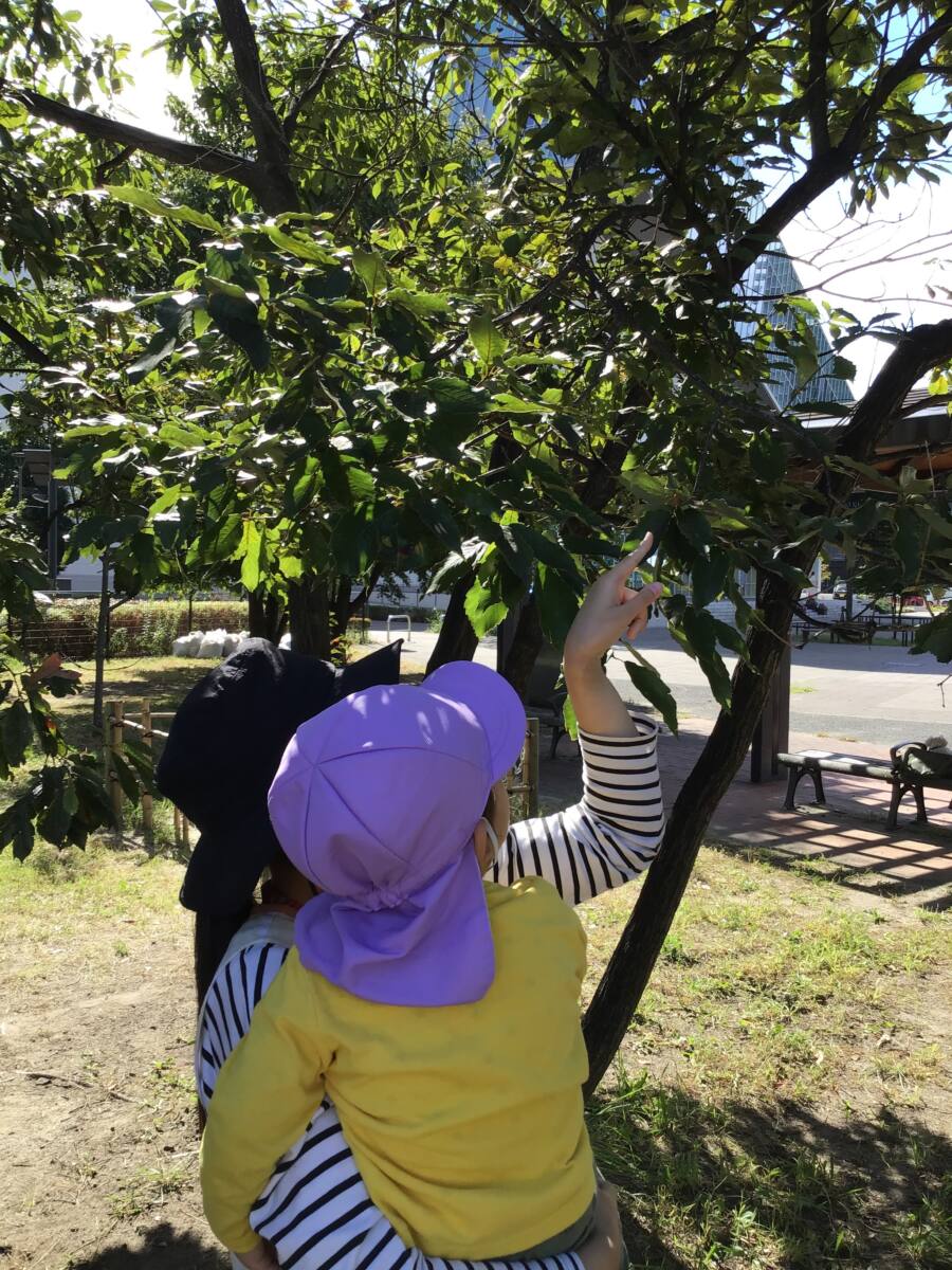 木から立派などんぐりがみんなのもとへ来てくれました🌰