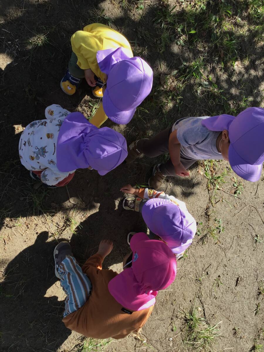公園では生き物や植物探しに夢中のお子さまたち😊