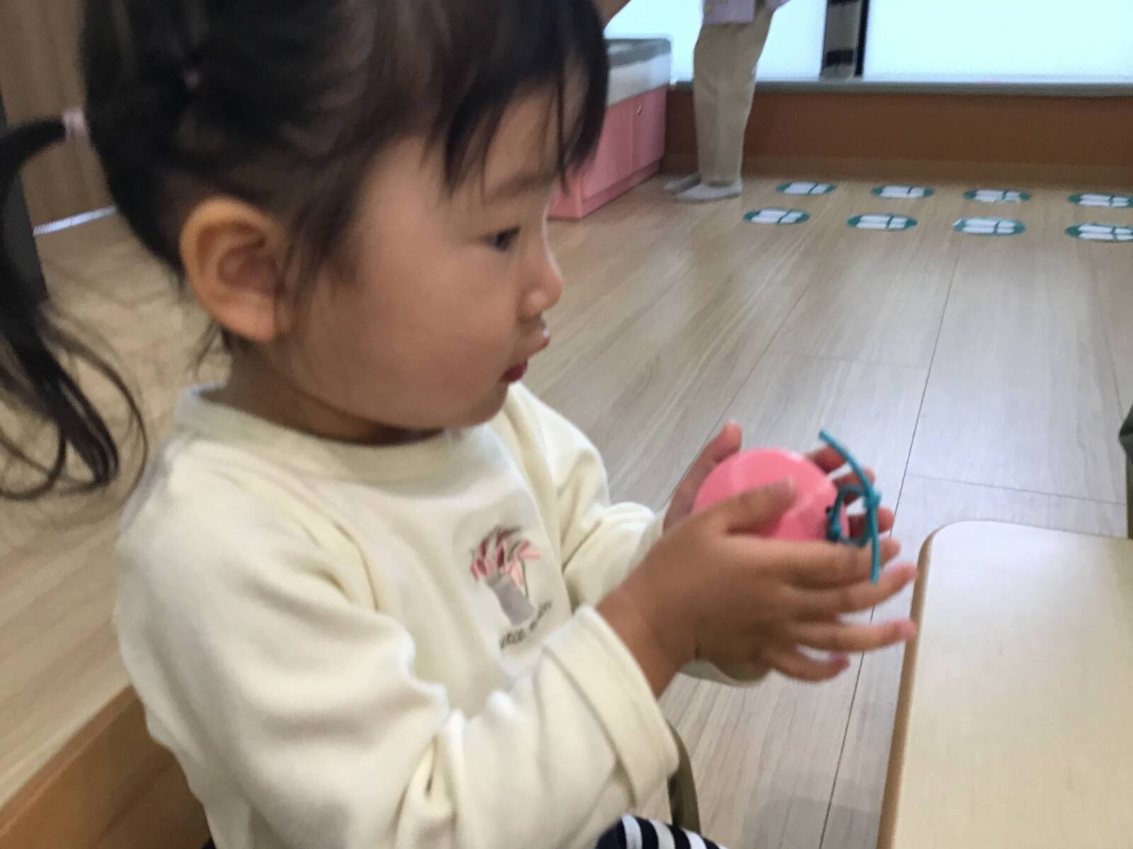 初めて行うわらべうた遊びでしたが、保育士の真似をして上手に楽しむ姿が見られました😄🎶