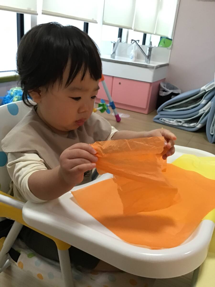 花紙の感触を楽しんだり指先を使ってちぎったりと思い思いに楽しむ姿が見られました🎶✨