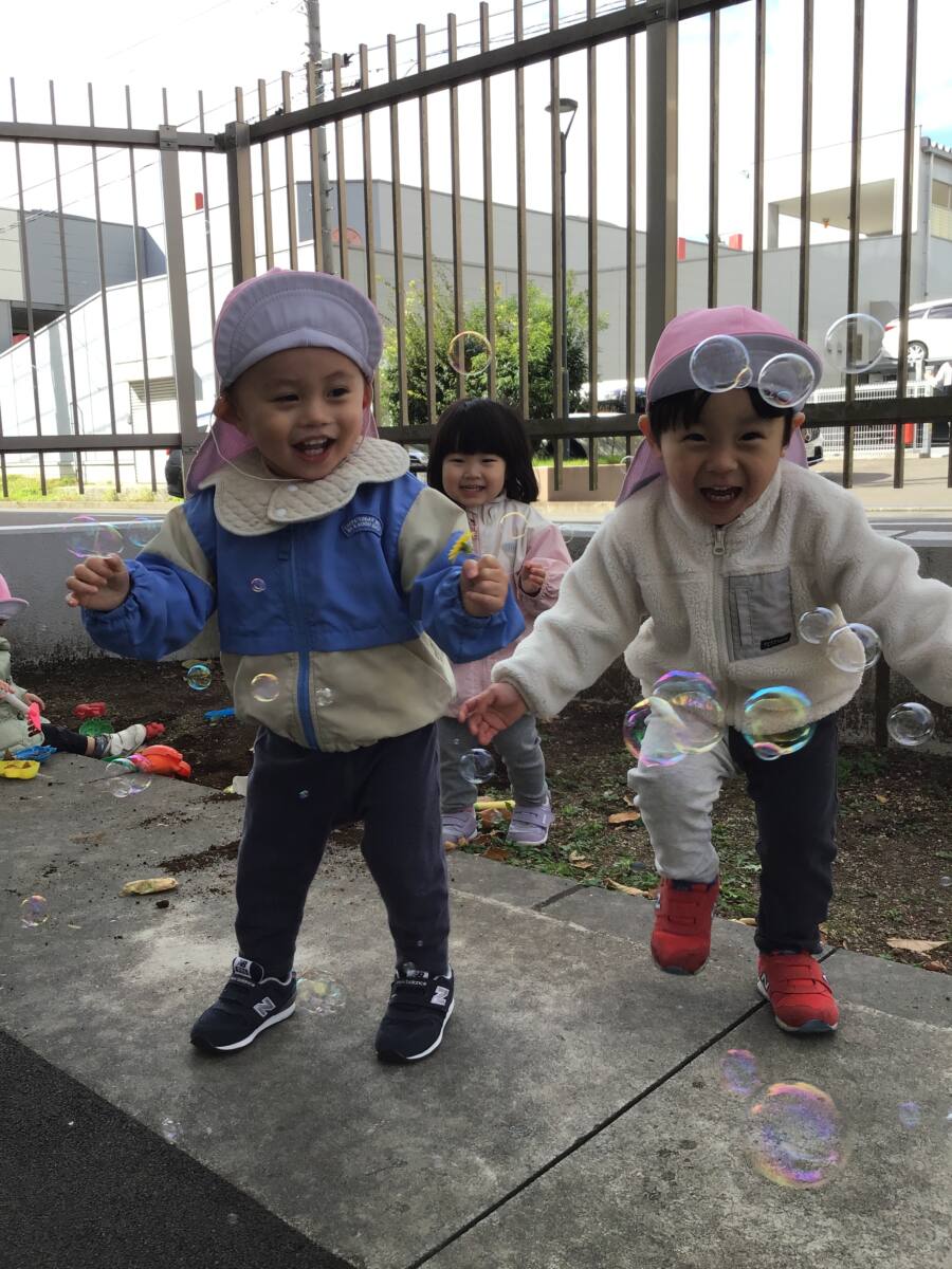 保育園に帰ってきてからは園前でシャボン玉や砂場遊びをしました😘🌈