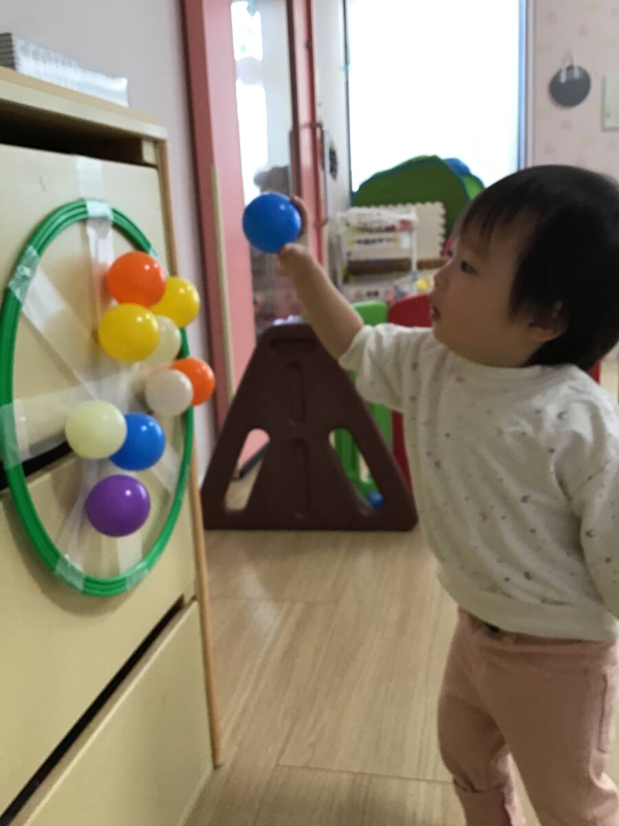 すてらさんは、お部屋で体操をしたりボールを拾ってペタっと張り付けたりと、身体を動かして遊びました(*´ω`)💓