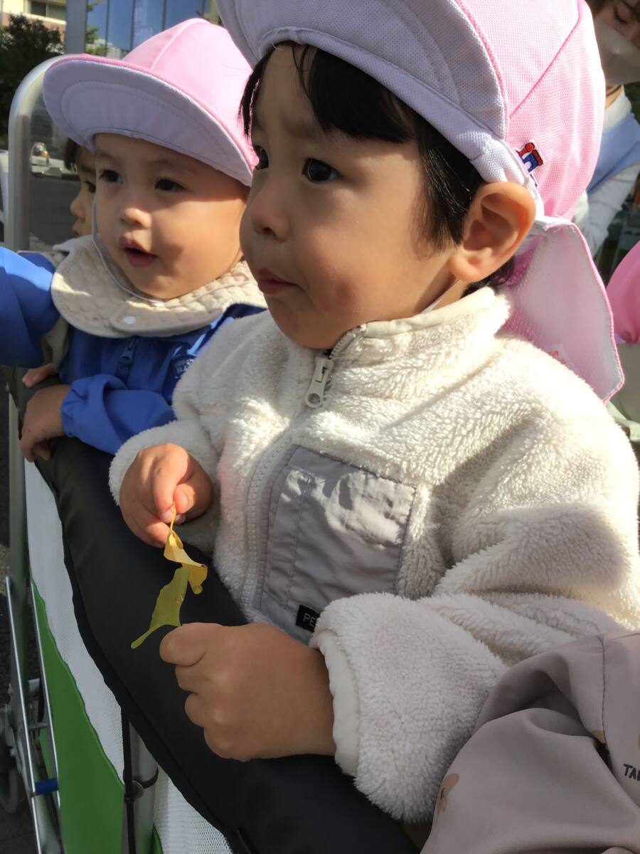 綺麗な黄色のイチョウの葉がありました👀!!葉っぱにも様々な色、形があり面白いです🎵