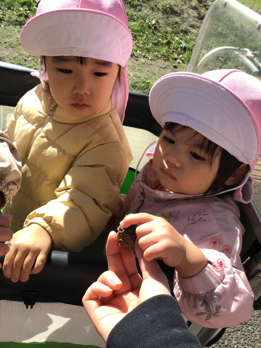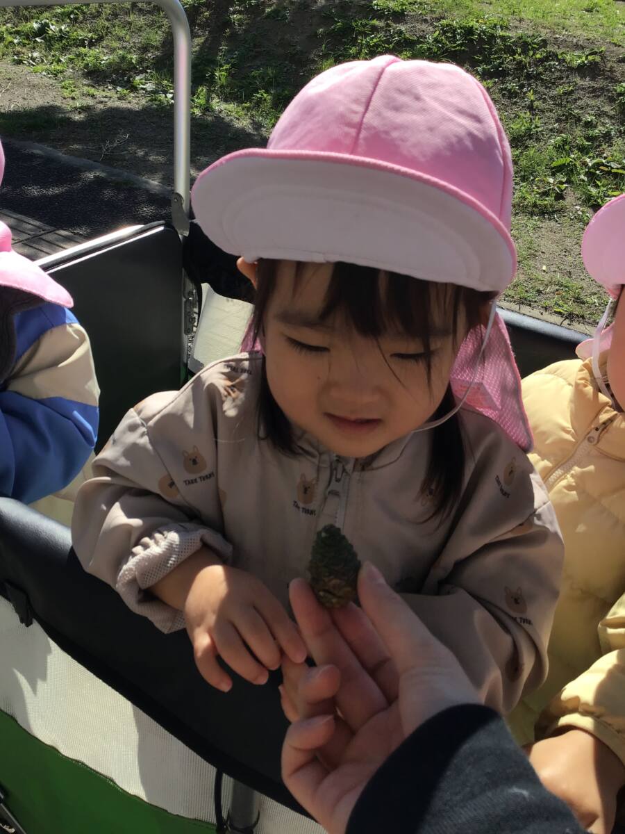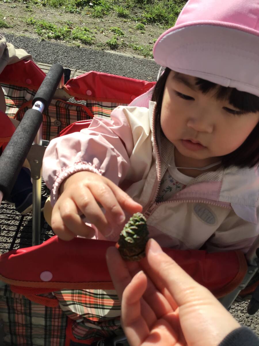 お散歩をしながら、とんぼさんに出会ったり、松ぼっくりやどんぐりを見つけて