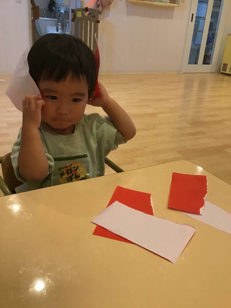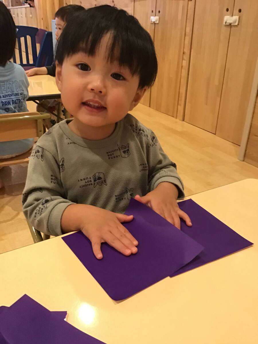 これは何色?と折り紙を見せて聞くと、「あかー!」「むらさき!」と元気いっぱいに答えてくれました🌈