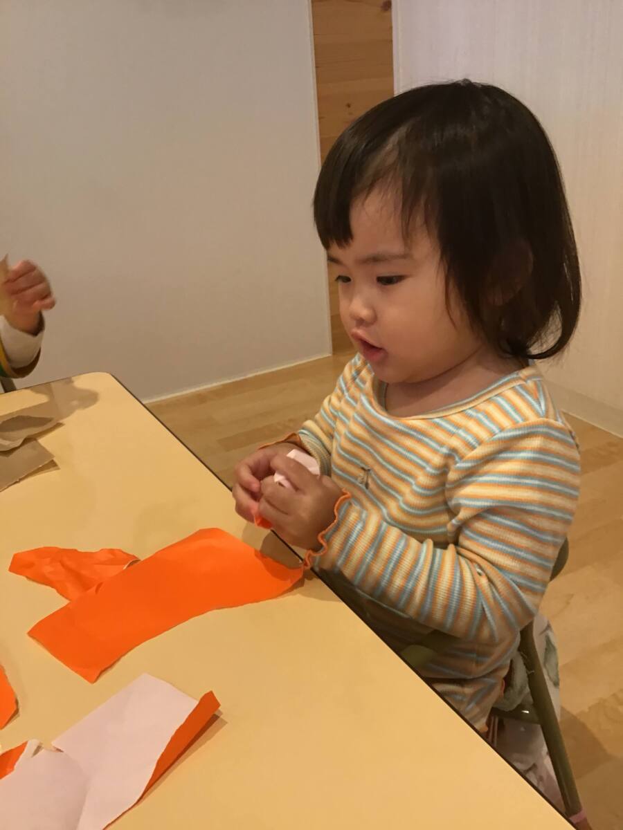 自由に折り紙をビリビリ❕指先に伝わる感触や破れる音が楽しいです♬