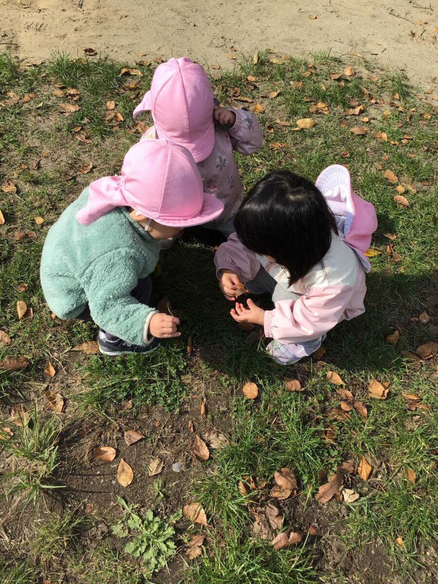 公園では、葉っぱや石など自然にたくさん触れながら戸外遊びを楽しみました🎶✨