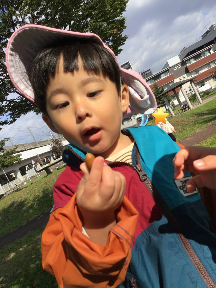 るなさんは、公園へ向かう途中で椿の実を見つけてみんなで観察しましたよ🌺