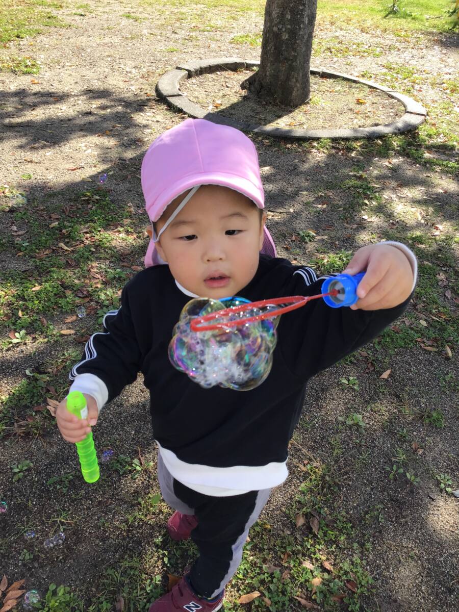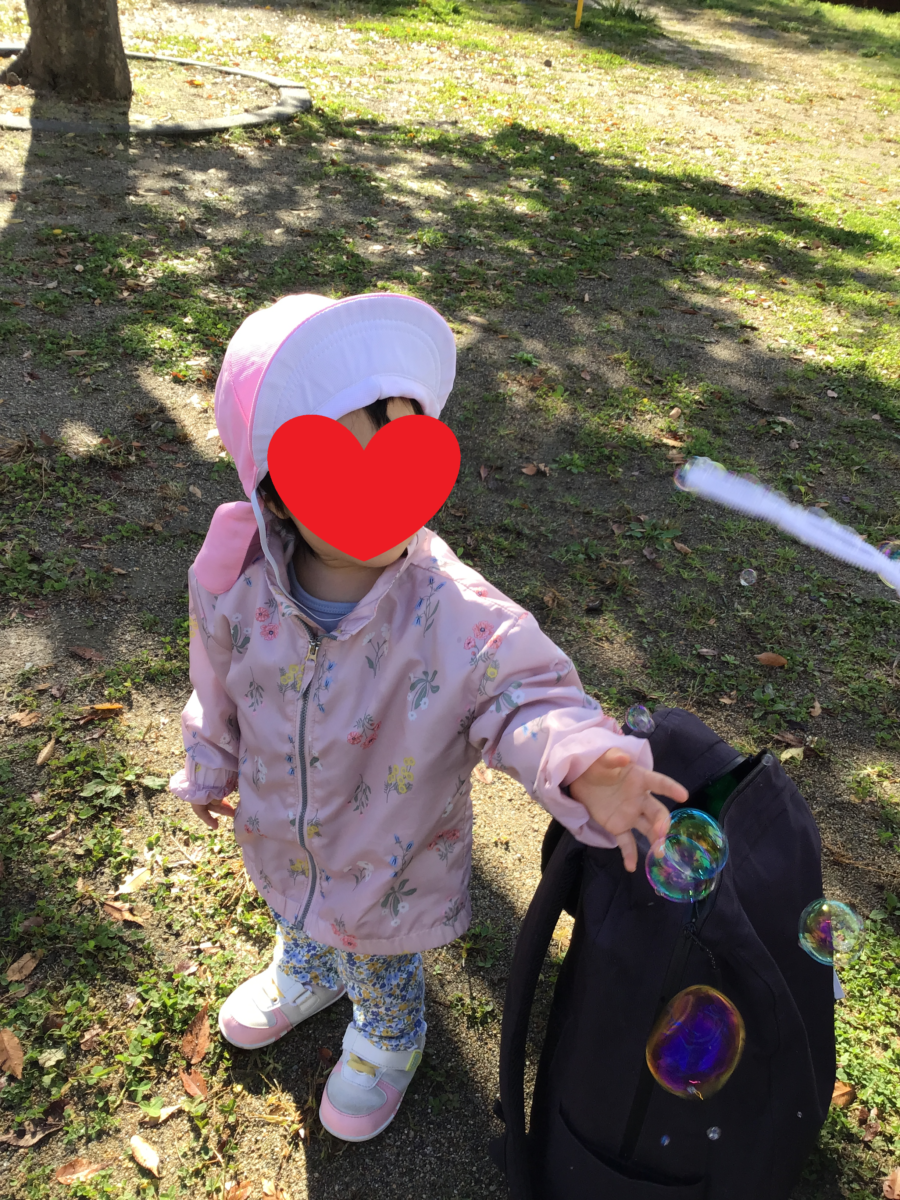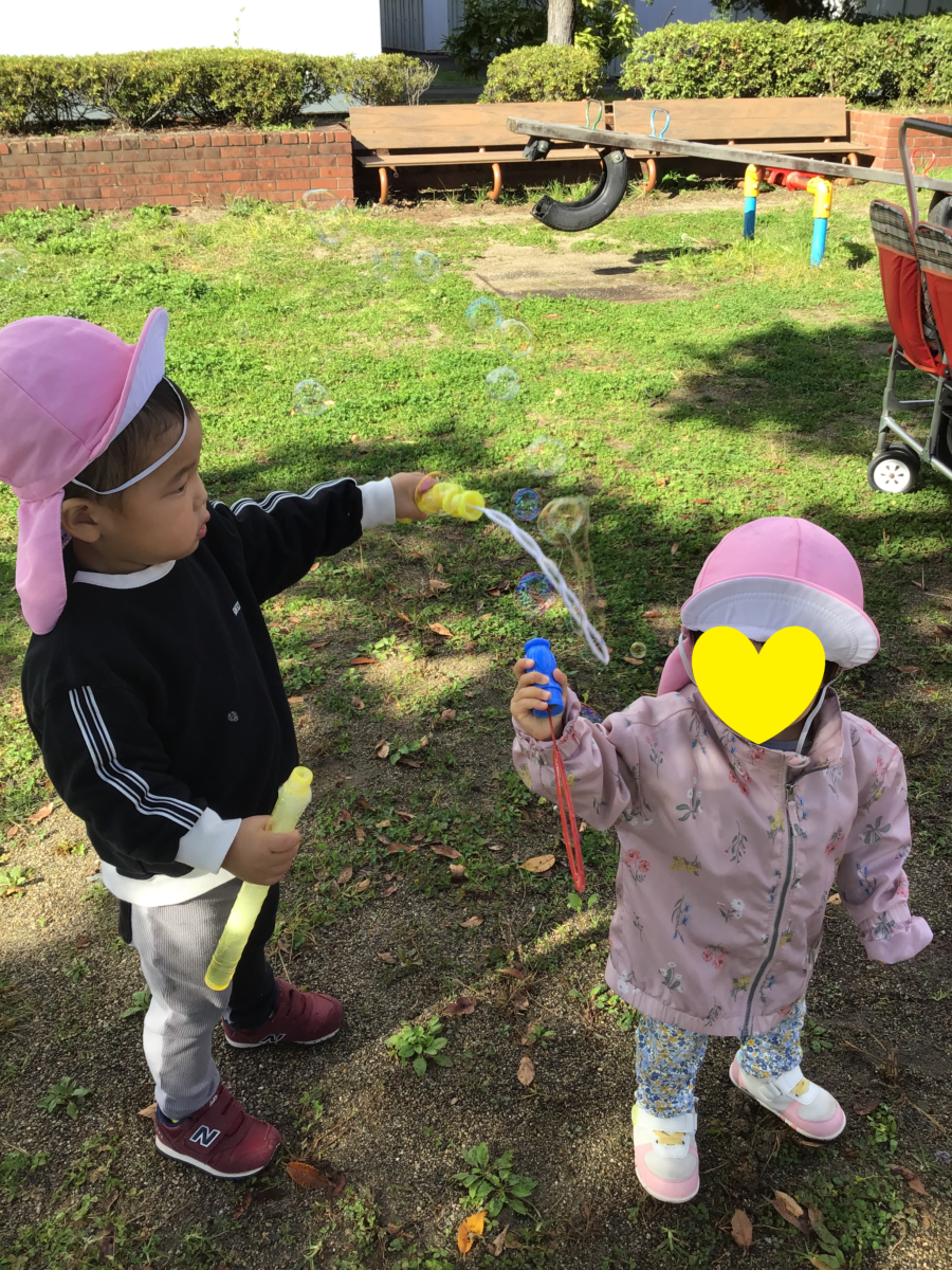 公園ではシャボン玉やボール遊びをしたり、滑り台を滑ったり!