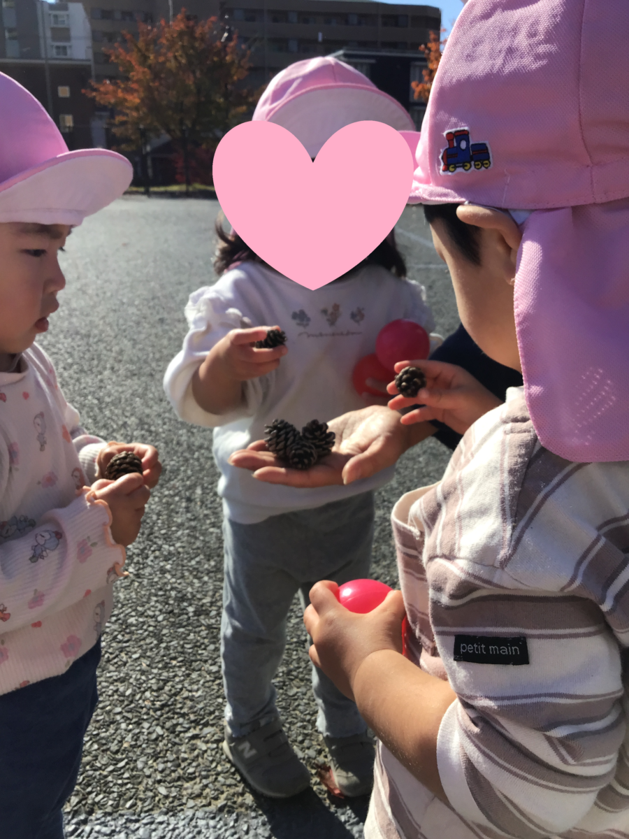 松ぼっくりを見つけたお友達が、他のお友達におすそ分けしてくれました✨