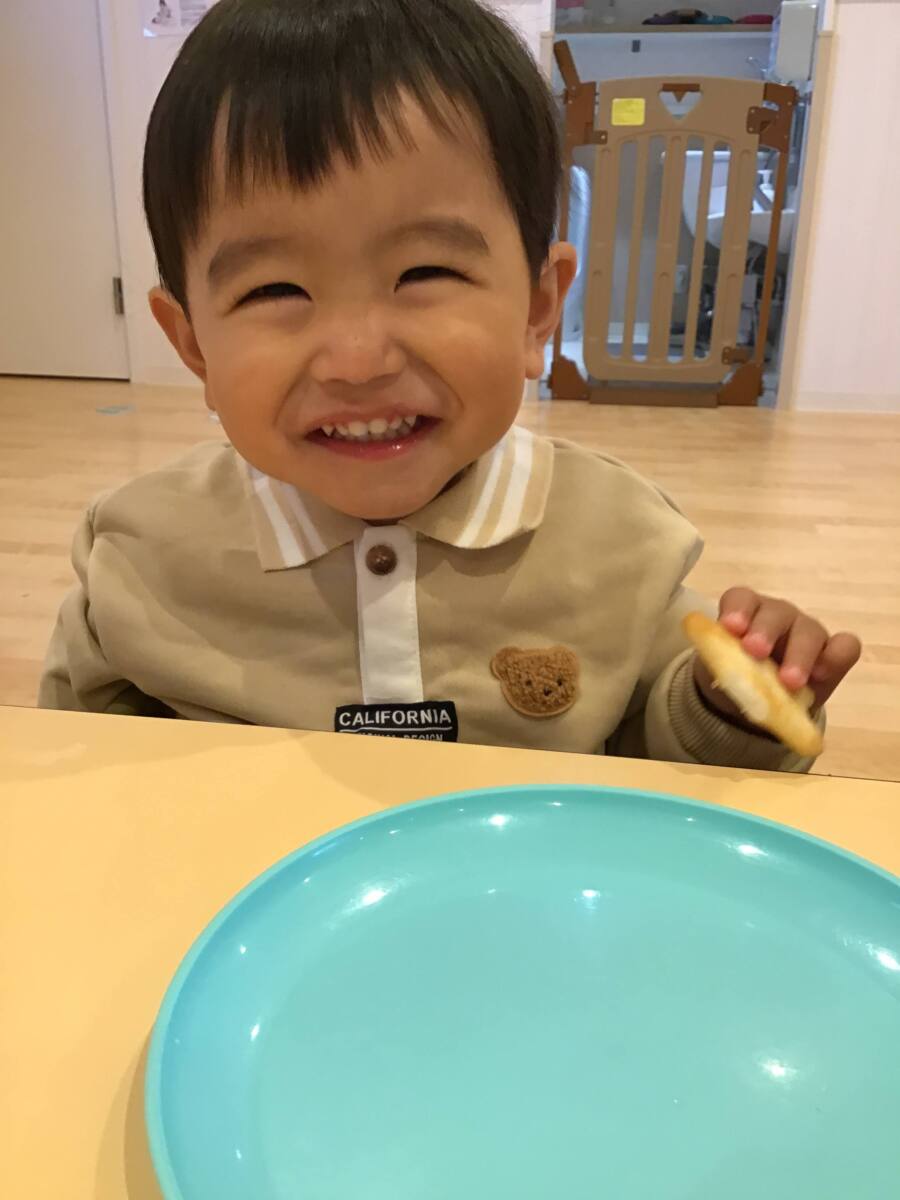 大好きなおせんべいを食べてこのキラキラスマイル😊💕
