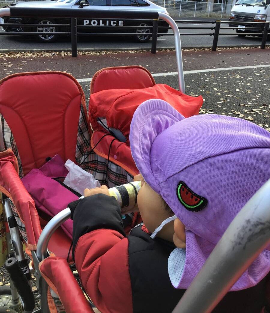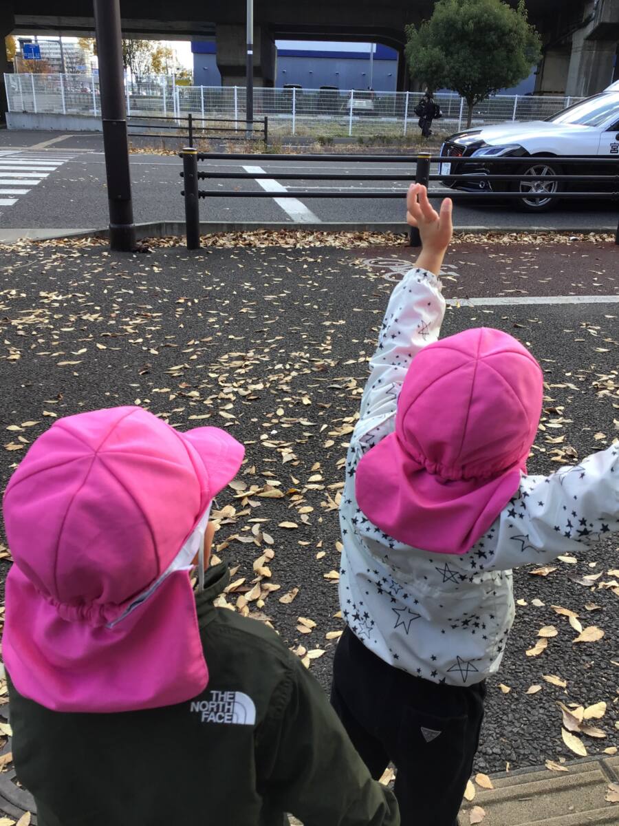 警察官の方が気付いて手を振ってくれたのでテンションが上がり大喜びのお子さまたち♡
