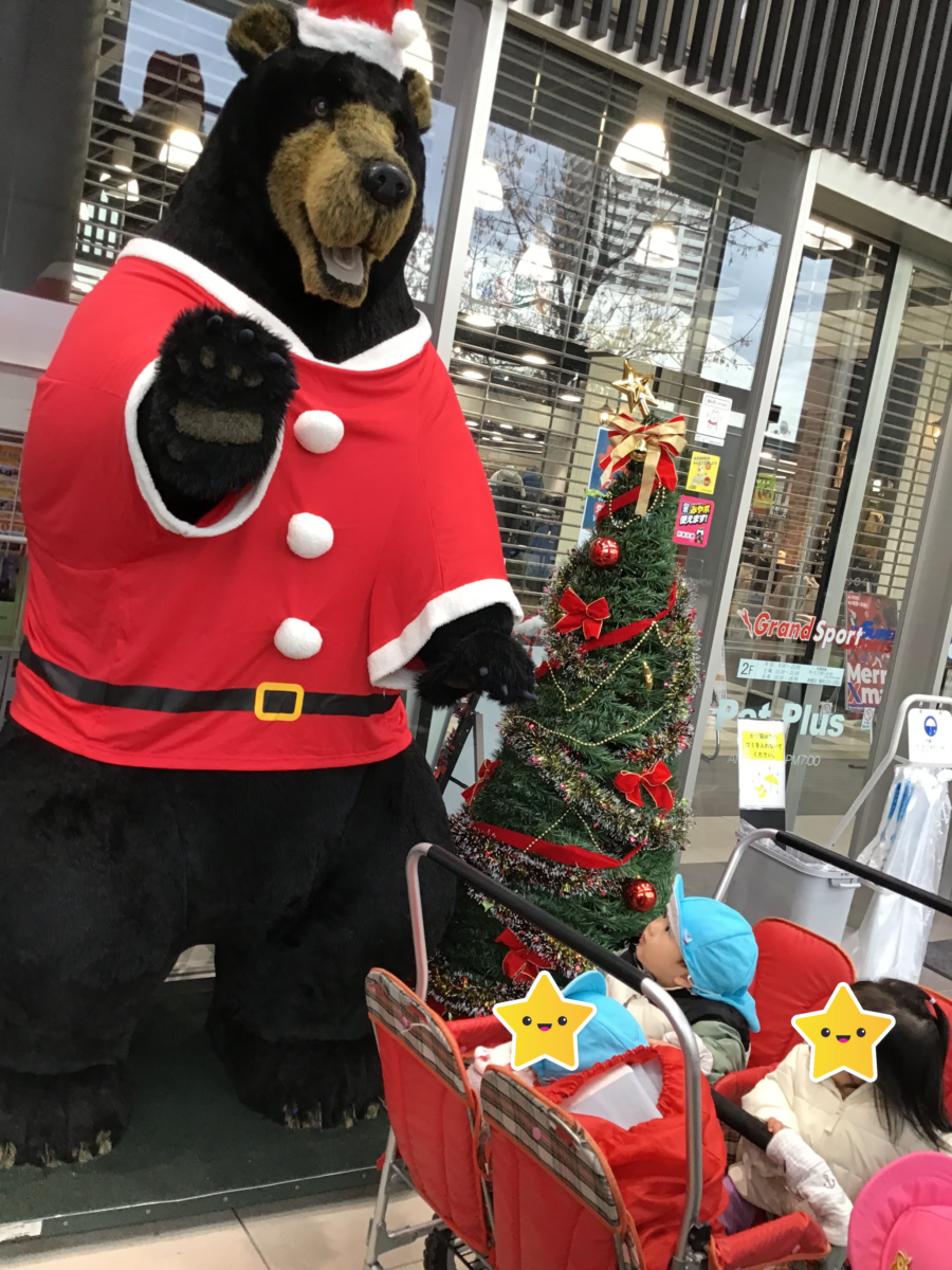 今日のお散歩では、お子様たちお気に入りの大好きなもの達がクリスマス仕様になっているのを発見❕