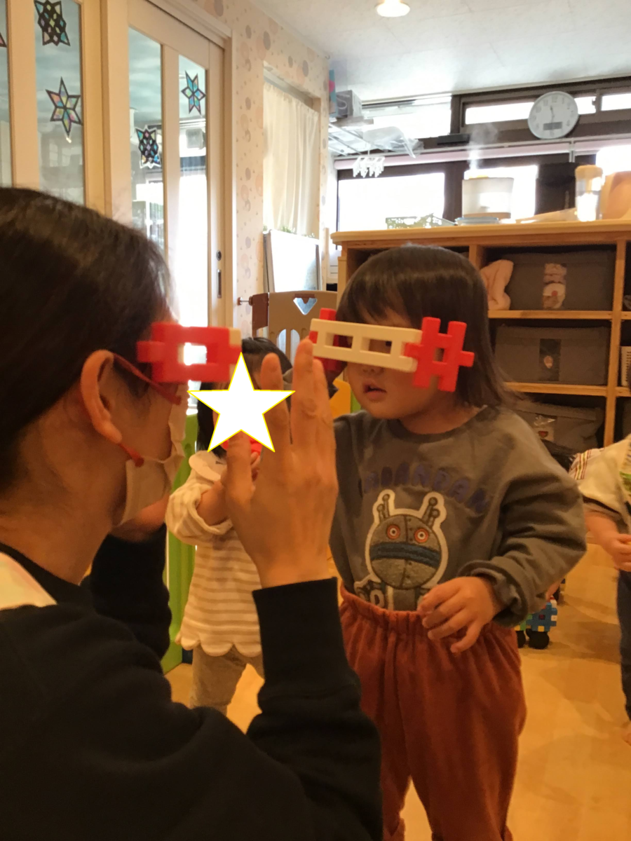 ブロックで眼鏡を作ったお子様🙌見た物が3Dで浮き出てきそうですね🤭💗