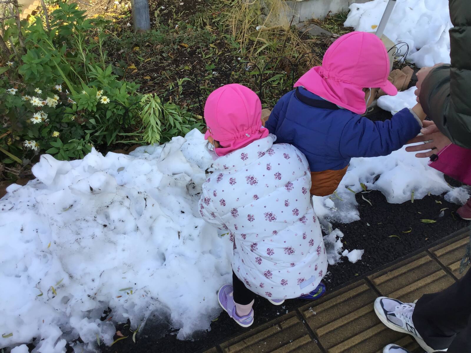 足て踏んでみたり、手で固まった雪を豪快に持ち上げてみたり🤭「冷たーい!」と話し盛り上がっていました⭐
