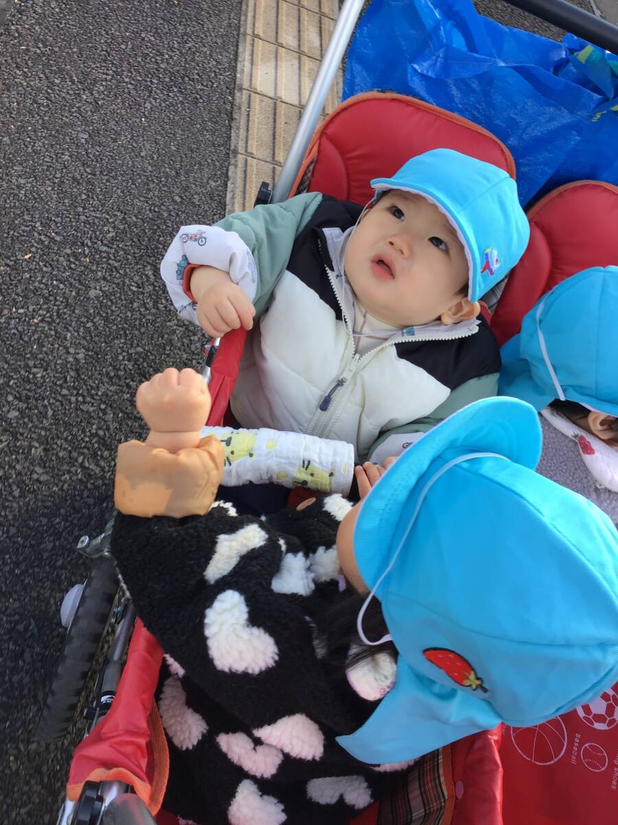 保育士が「しゅっぱーつ!」と言うと、ゴーゴー!と手をグーにするお子様達💗🤭