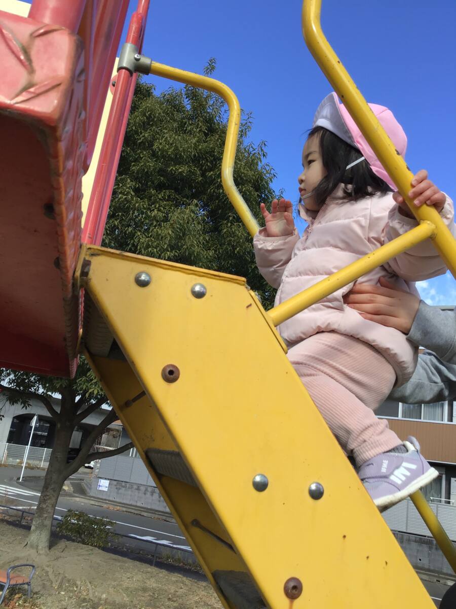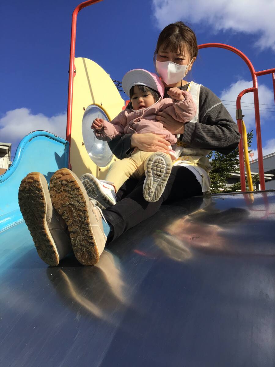 順番に保育士と一緒にすべり台も楽しみました😄🌟