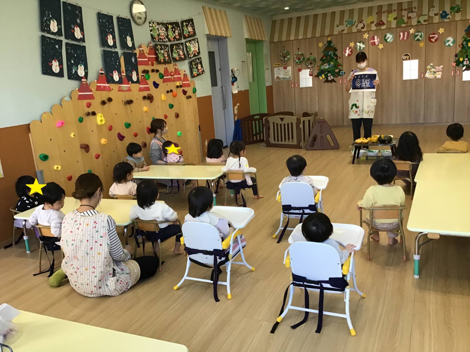 栄養士の先生から冬至についてのお話を聞いたり、