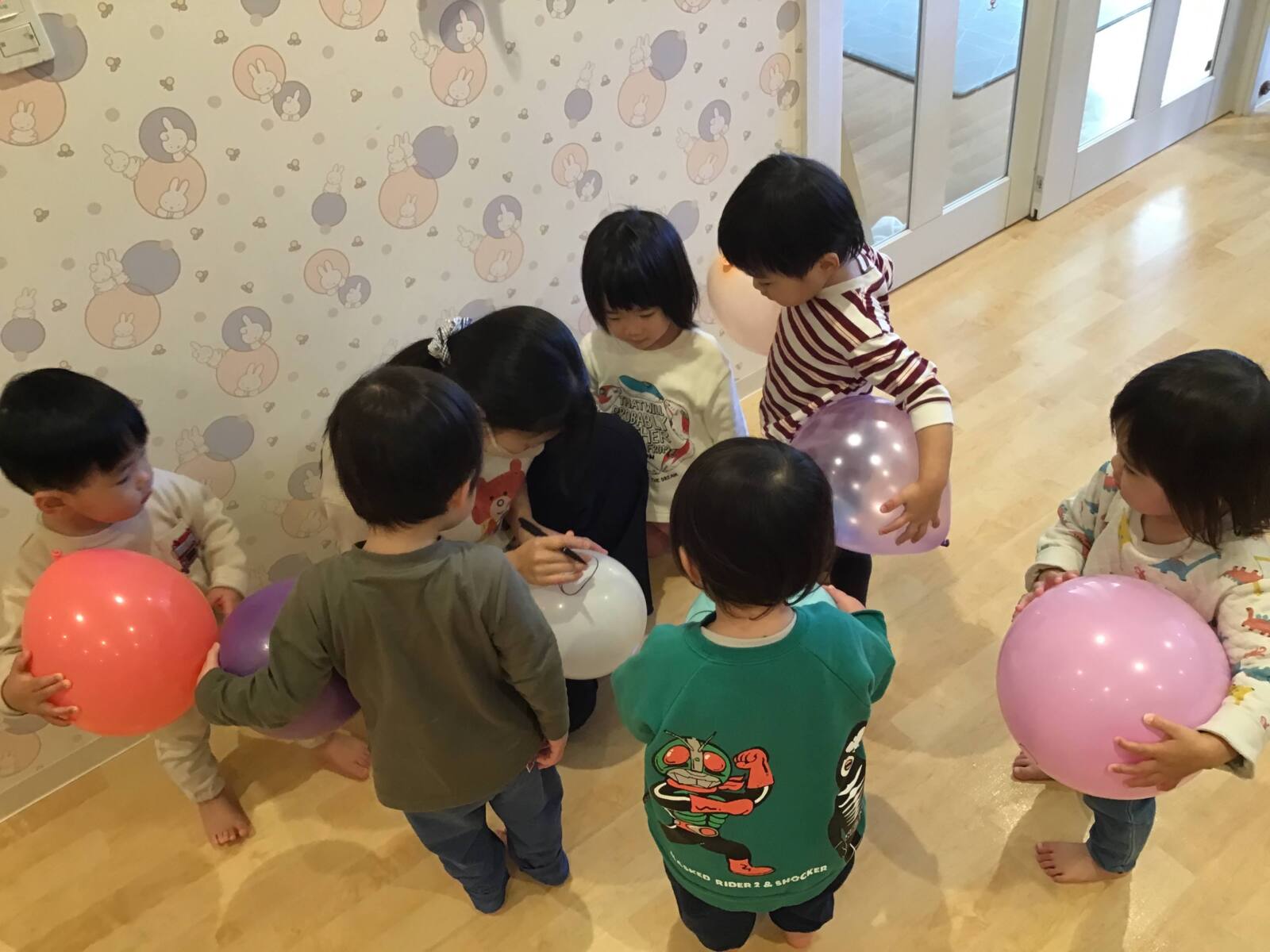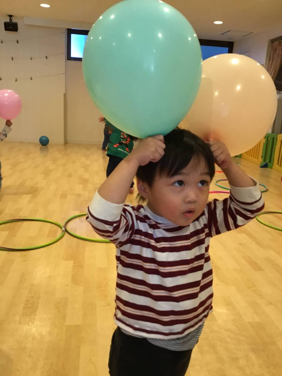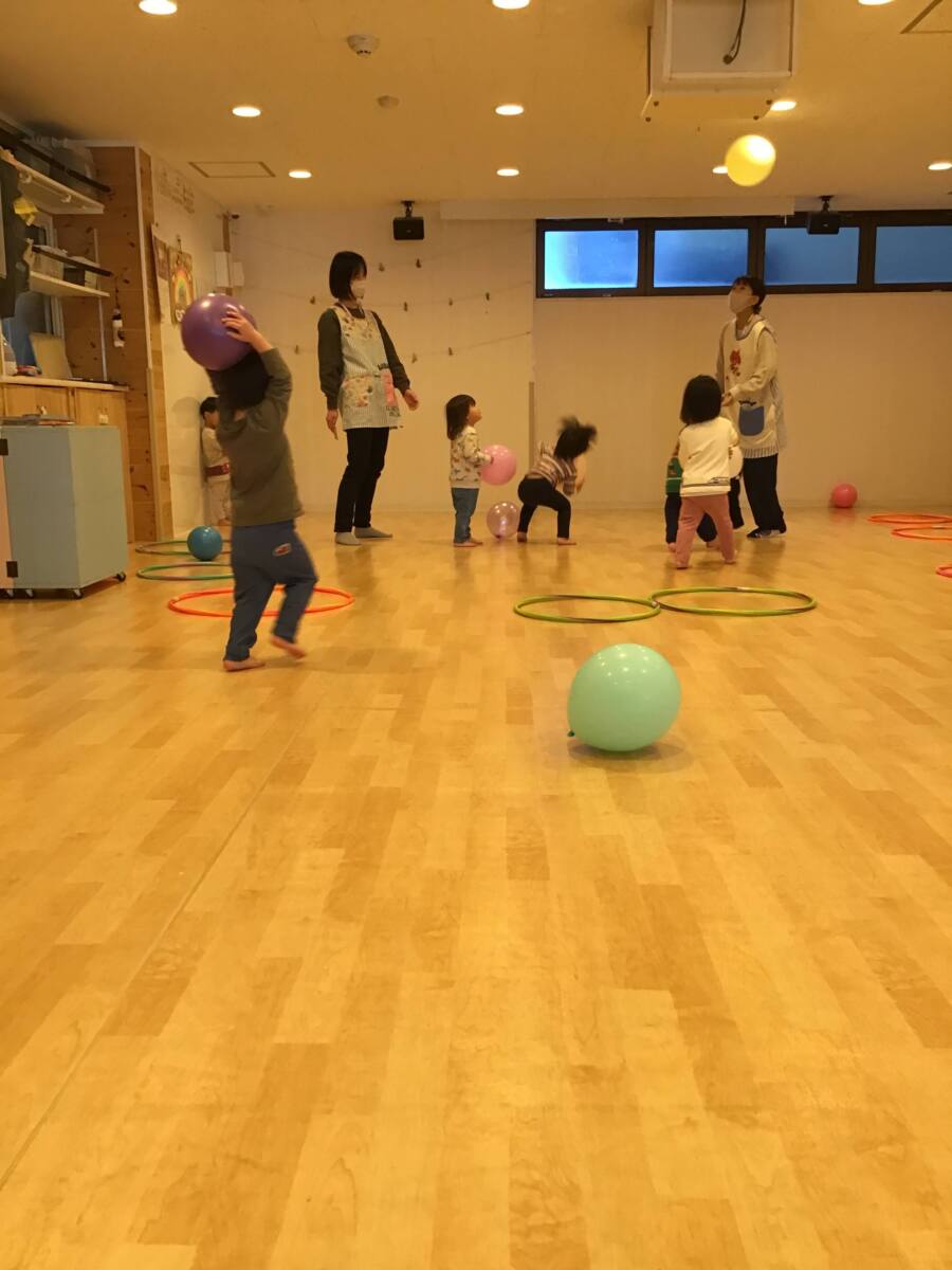 後半はお部屋の中でボールと風船、フラフープで遊びました🎶