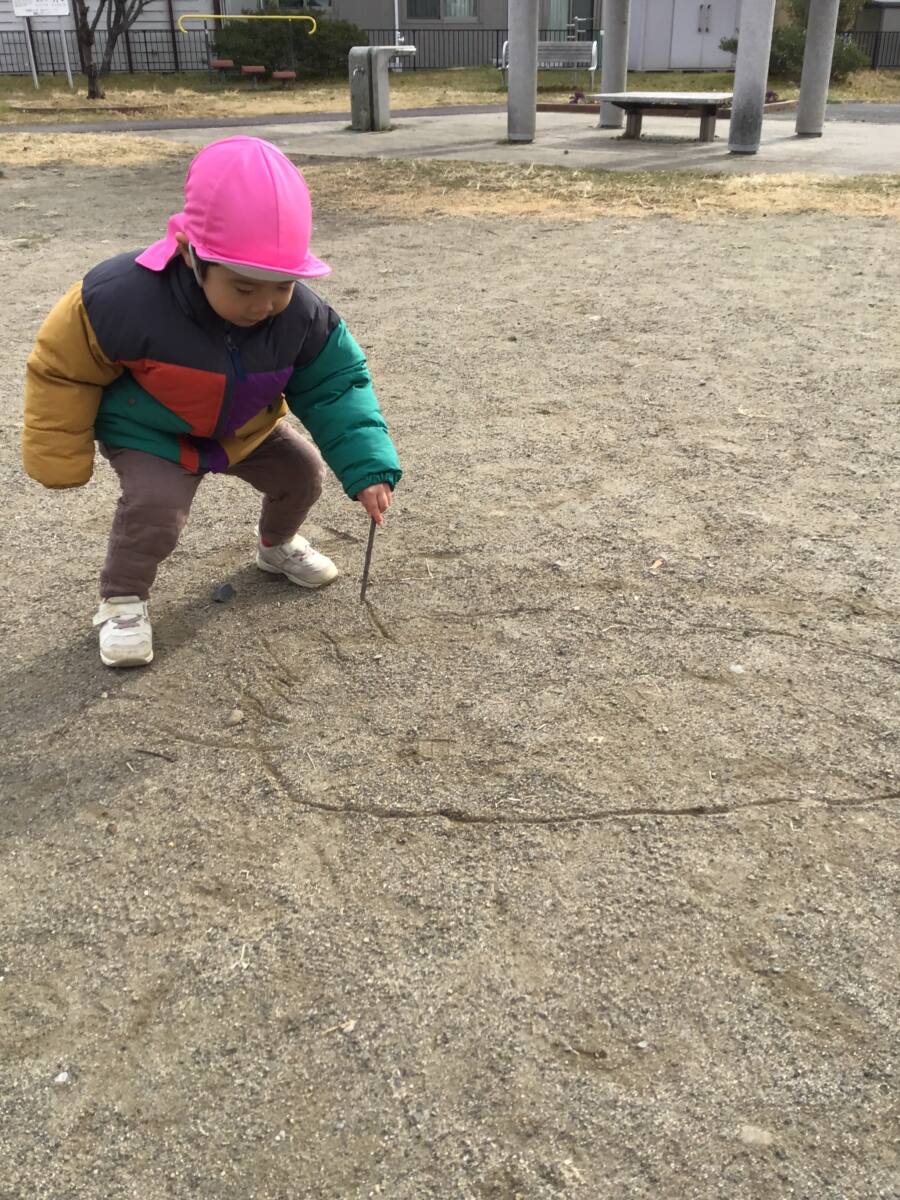 こちらでは地面に描き描き🎵何を描いたのか聞いてみると~❔
