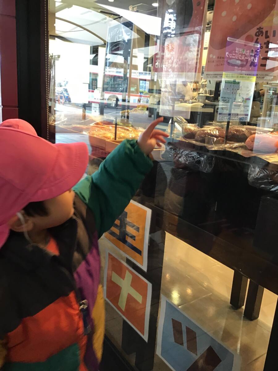 駅ではパン屋さんを眺めて好きなパンを選びました👆