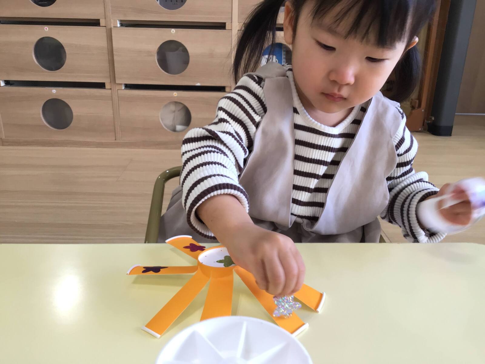 すてらさん。製作と園前で砂遊びやシャボン玉をして楽しく遊びましたよ😊