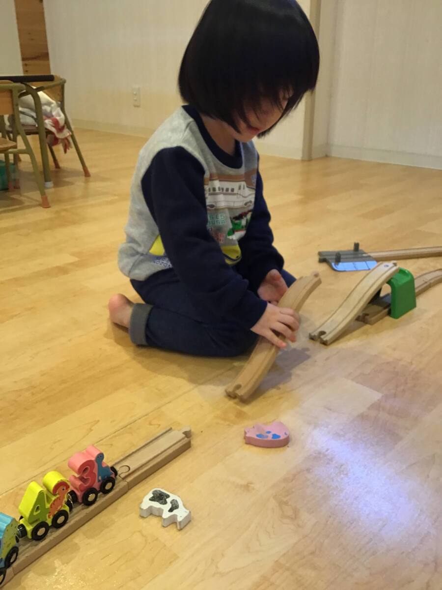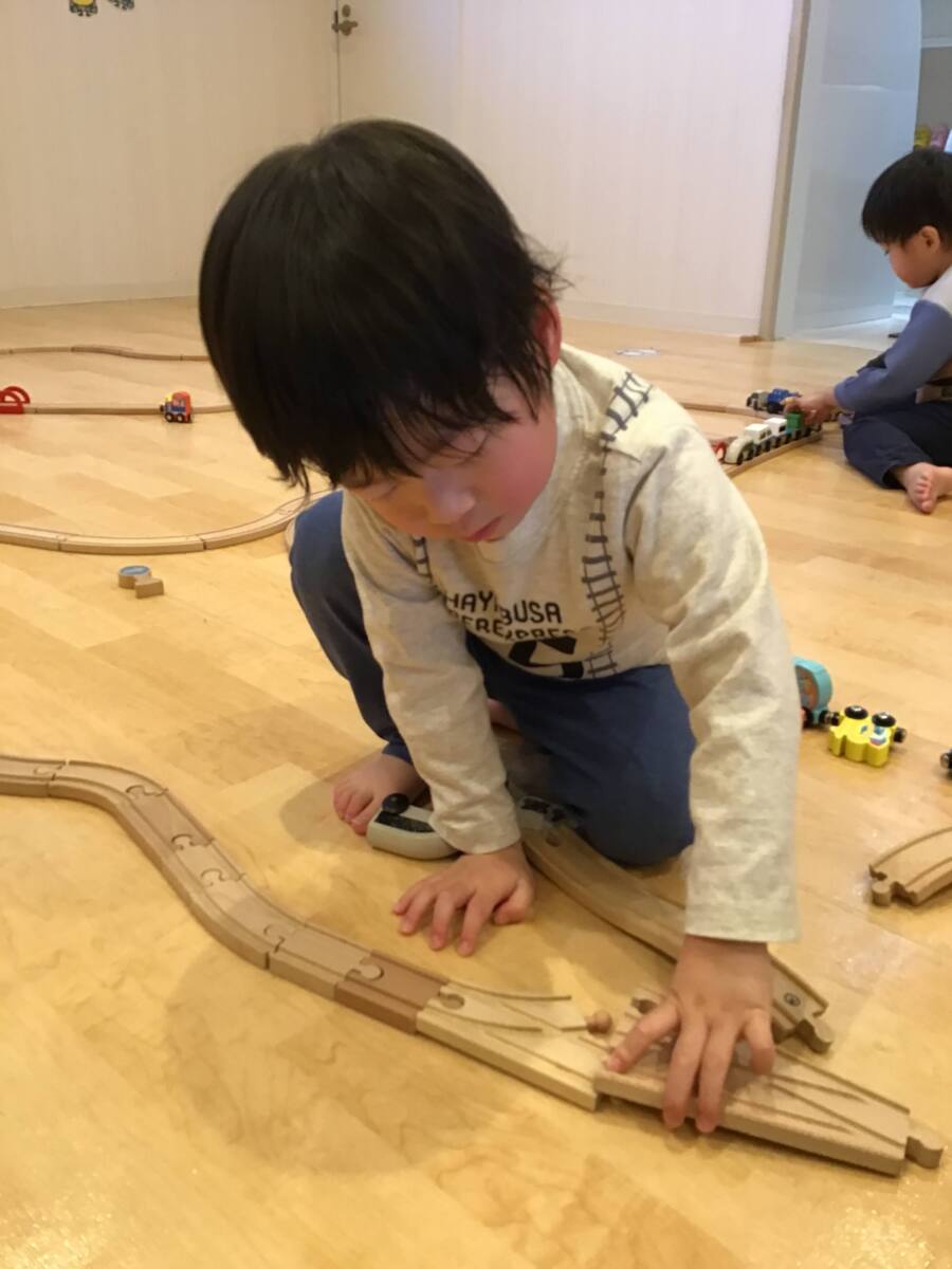 お部屋に広々好きなように線路を繋げていき、思いっきり楽しみました🚋💨