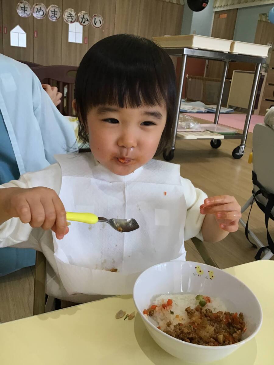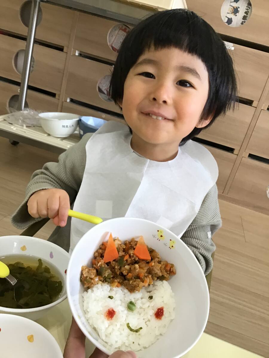 給食は特別メニュー⭐鬼さんカレー⭐を食べました✨✨