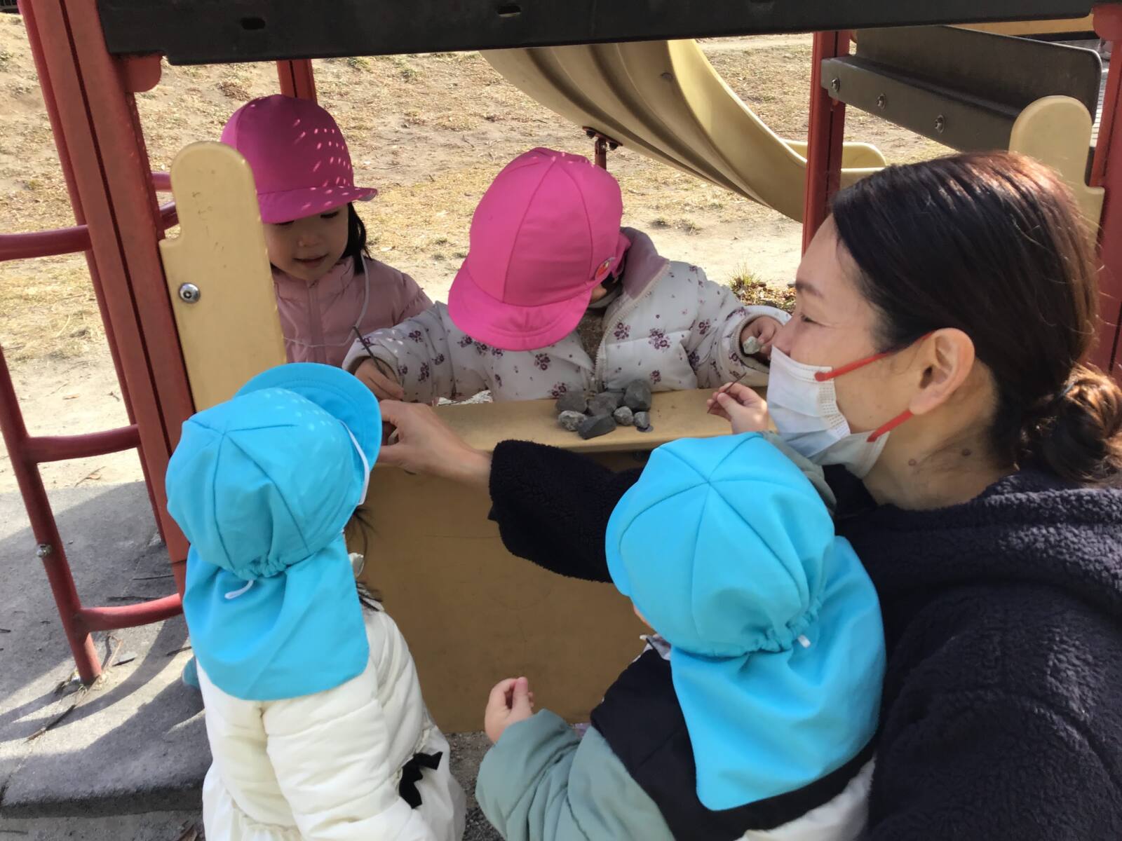 遊具の下ではあからさんがお店屋さんを開いていましたよ🙌