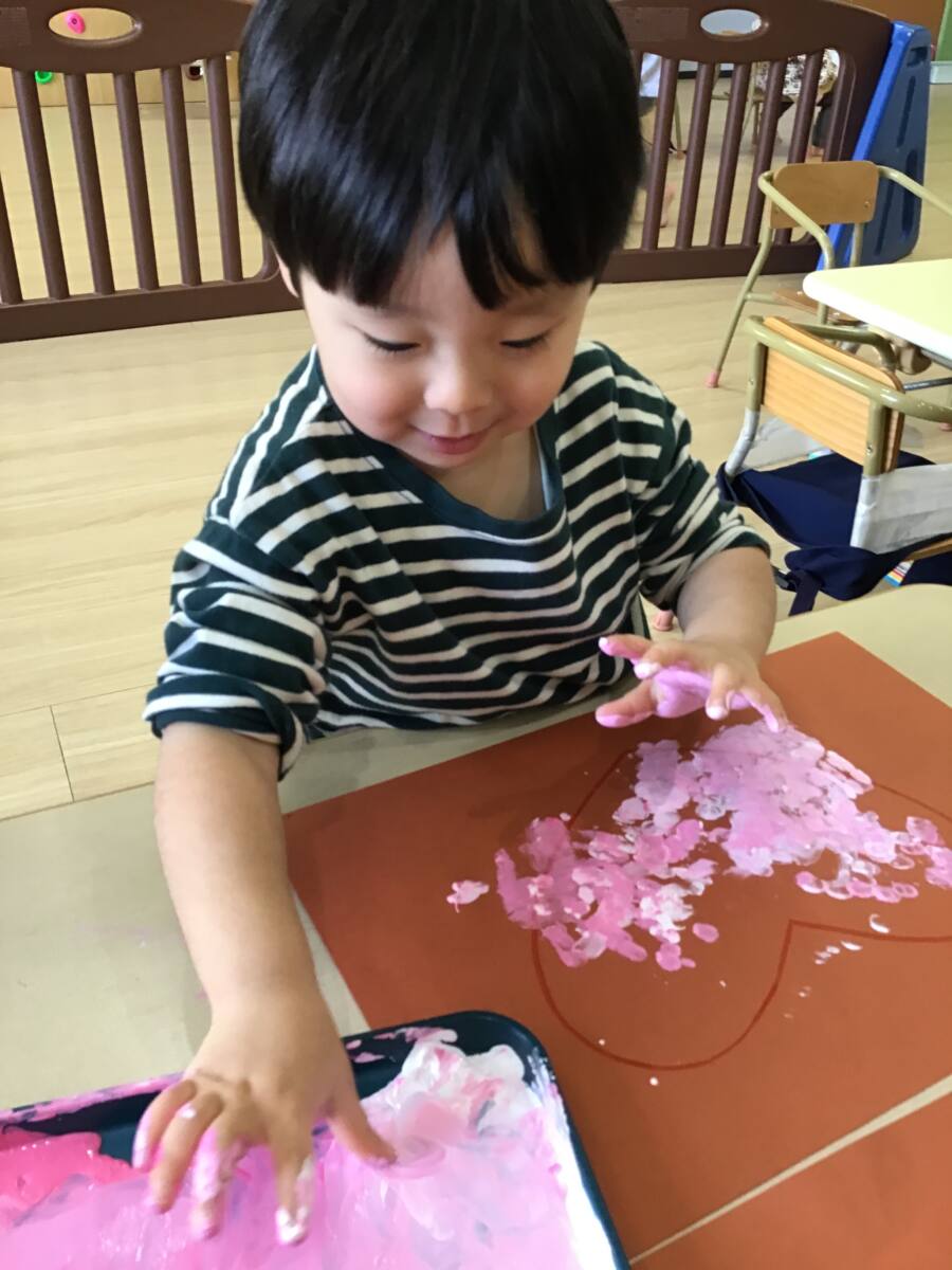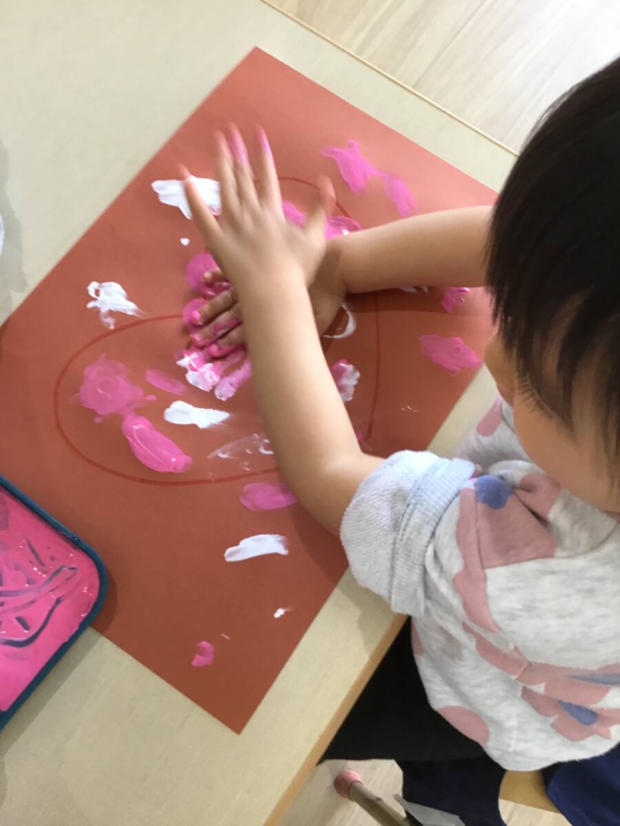 ダイナミックに手のひらで絵の具の感触を楽しむ姿が見られました!✨
