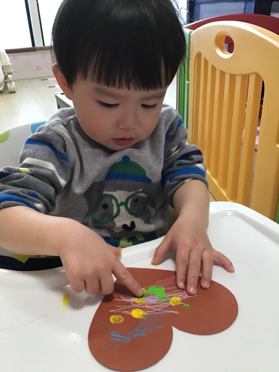 初めは指でちょんちょん♪と絵の具をスタンプしていたお友だちも、慣れてくると