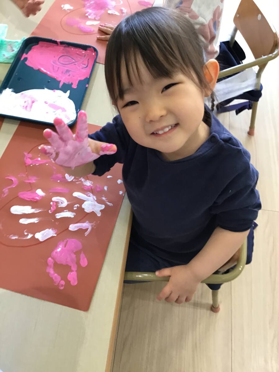 ピンク色になった可愛らしい手を見せてくれたお友だちです💗