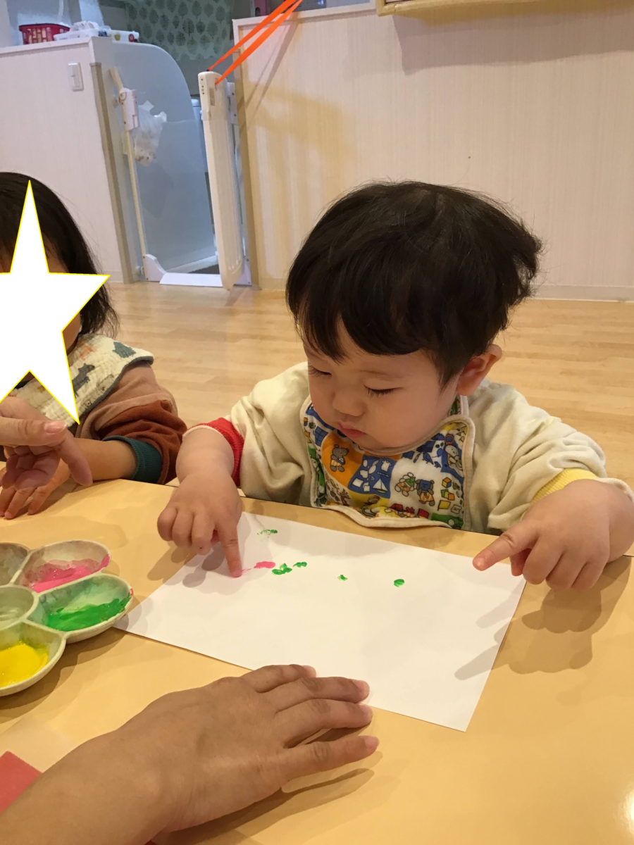 絵の具で指スタンプをしました😊🖌