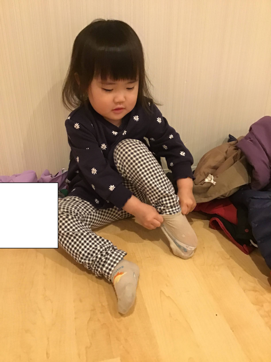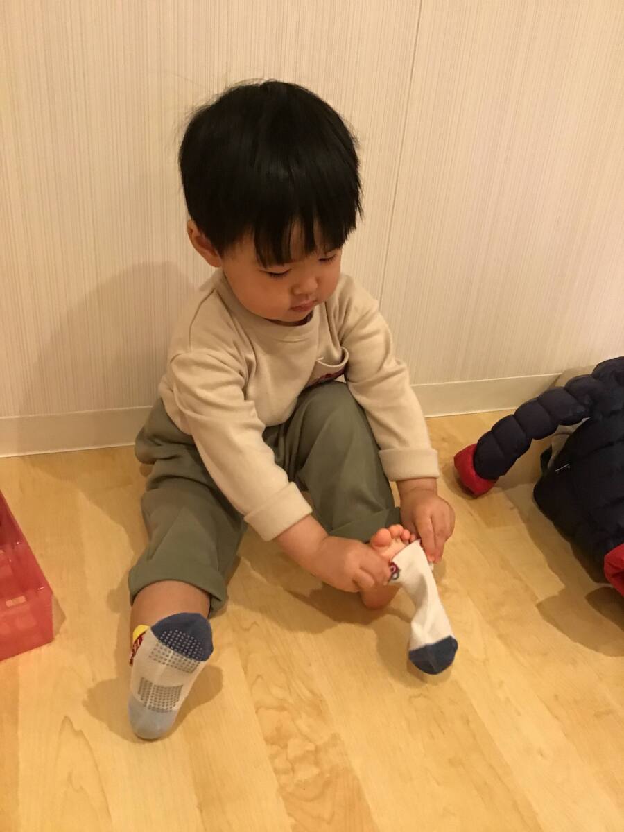 公園に行く準備を頑張っていましたよ🎶靴下と帽子、上着を身に付けます🤗頑張って準備をするお子様達です✊