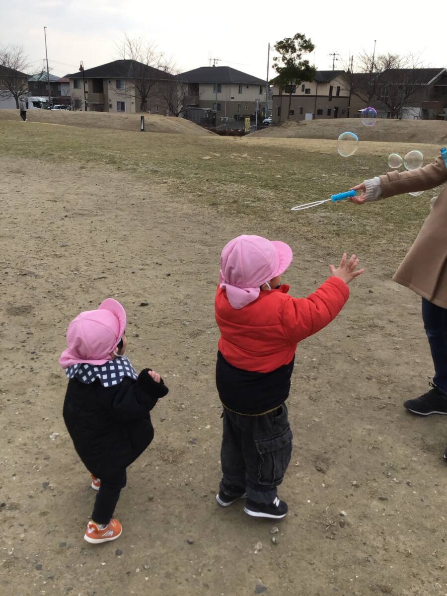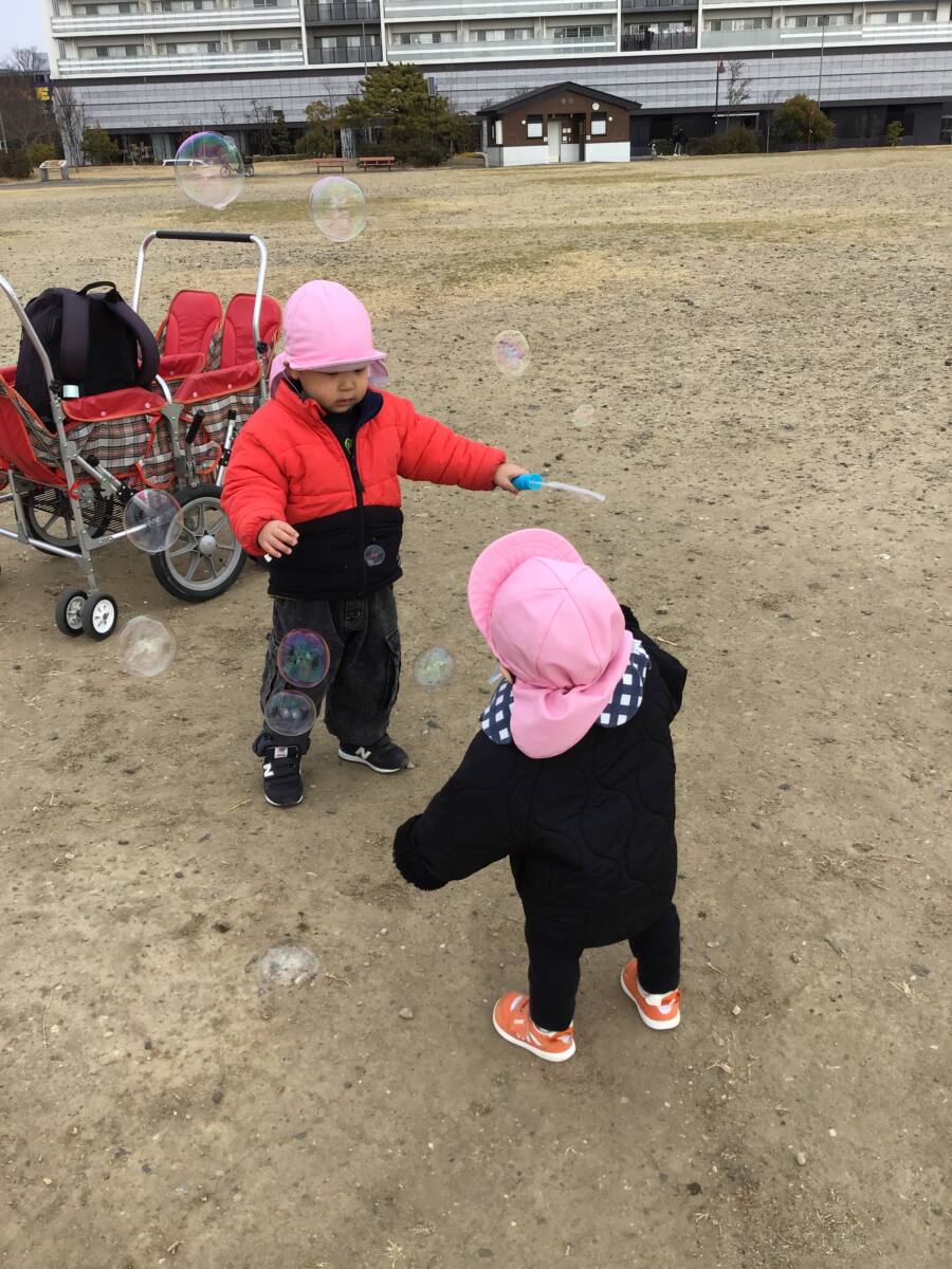 公園ではシャボン玉をしたり、追いかけっこをして遊びました♪