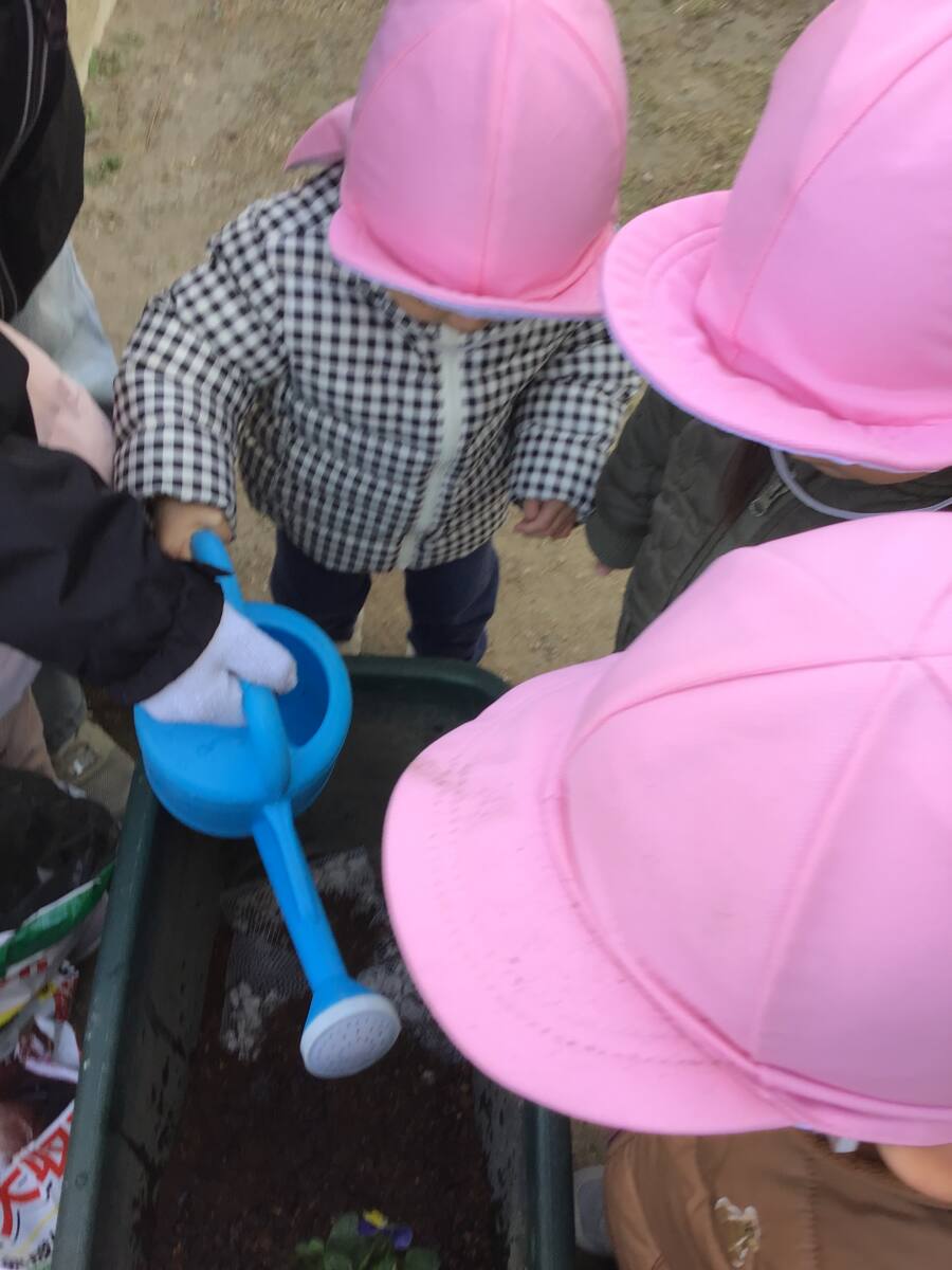 興味津々の様子で観察したりジョウロでそっとお水もかけてあげました👀✨💧