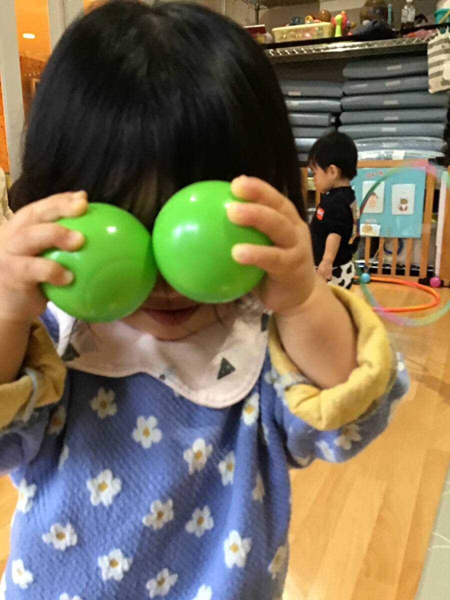 カラーボールで目を作ってみたりクマさんになってみたり🤭♡