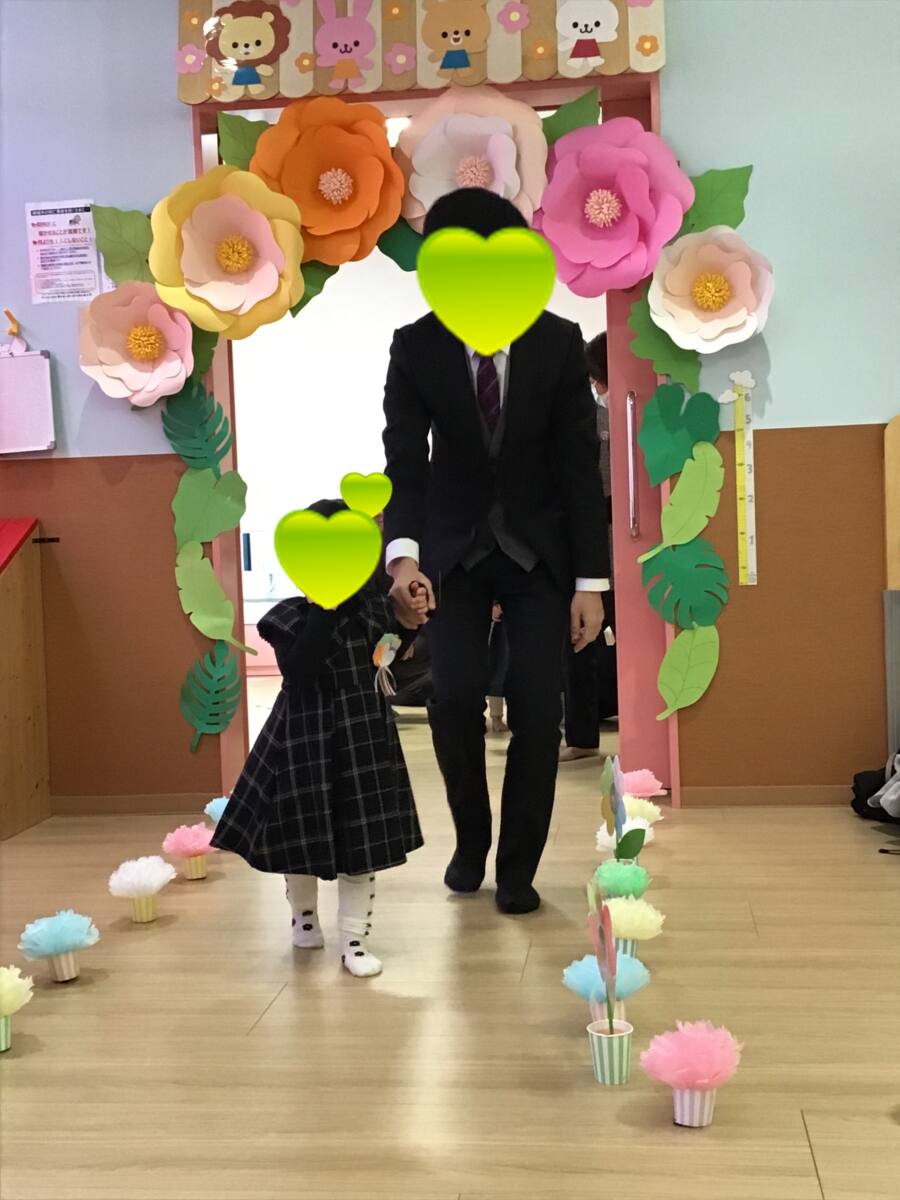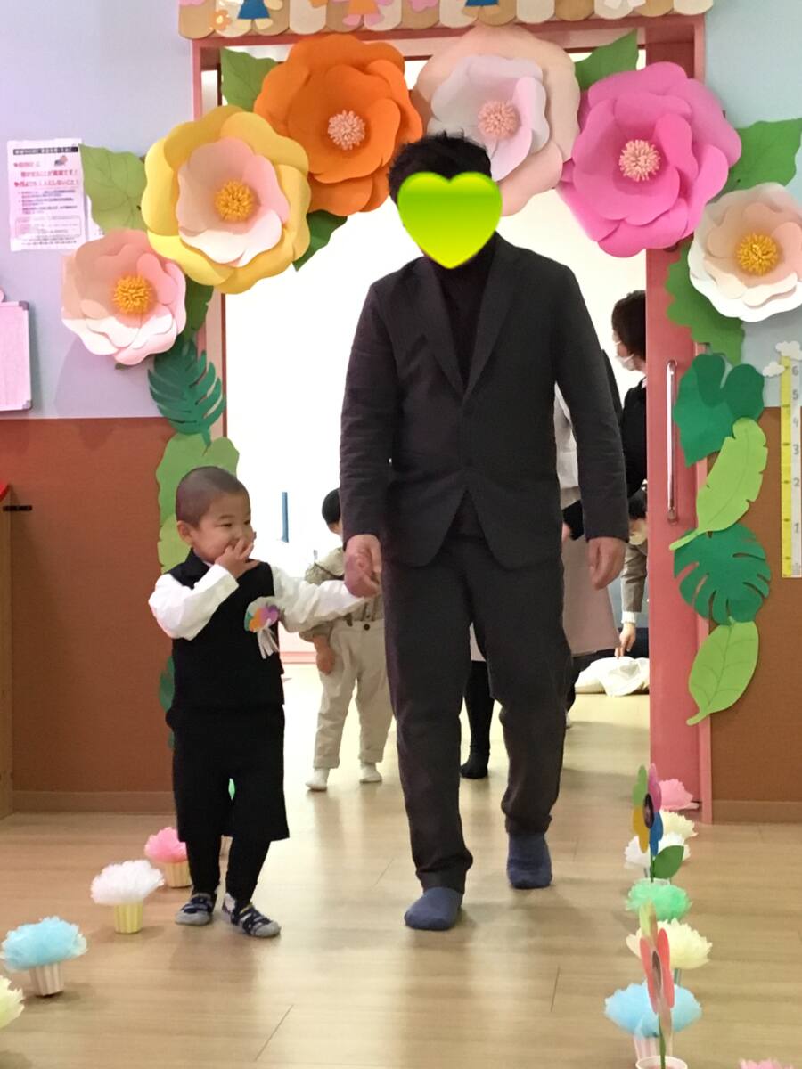 ドキドキしながらもお家の人と一緒にニコニコ笑顔で入場する姿が見られました🎶✨