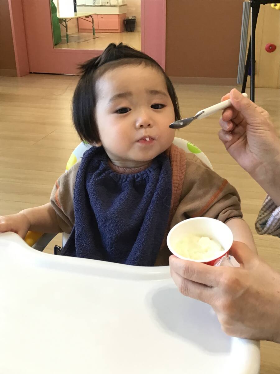 まずは午前おやつのヨーグルト食べて…♪