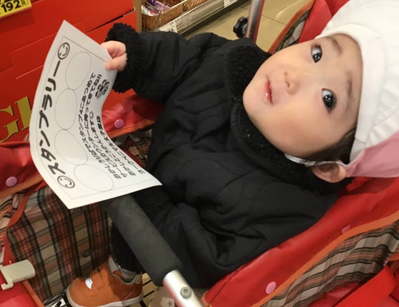 店内に入ると商品を興味津々に眺めるお友だち👀スタンプラリーでは、スタンプを押すたびに喜ぶ姿が見られました!スタンプを全て押すことが出来ると、店員さんからお菓子をいただきました💞