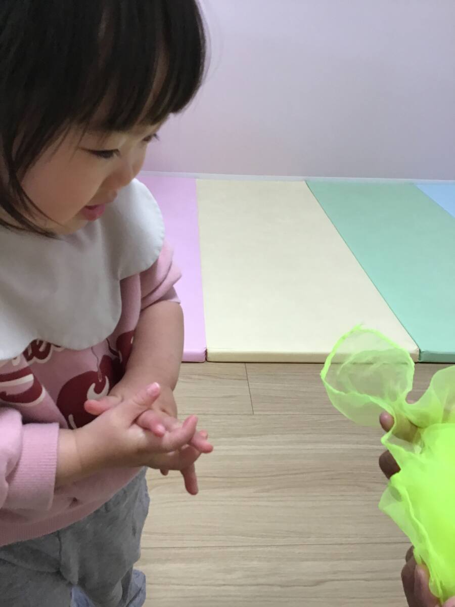 最初は不思議そうに見ていたお子様たちでしたが、慣れてくると保育士の真似をする姿が見られました!
