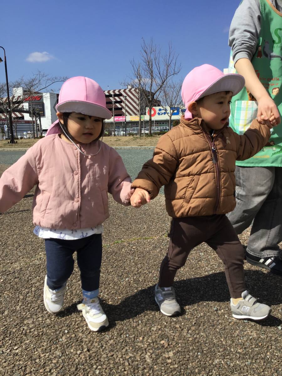 保育士やお友達と手を繋いで歩く練習をしました😊🎶