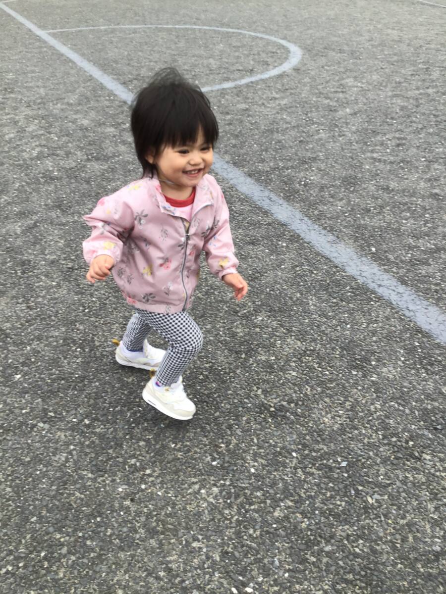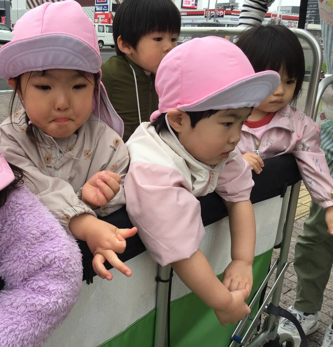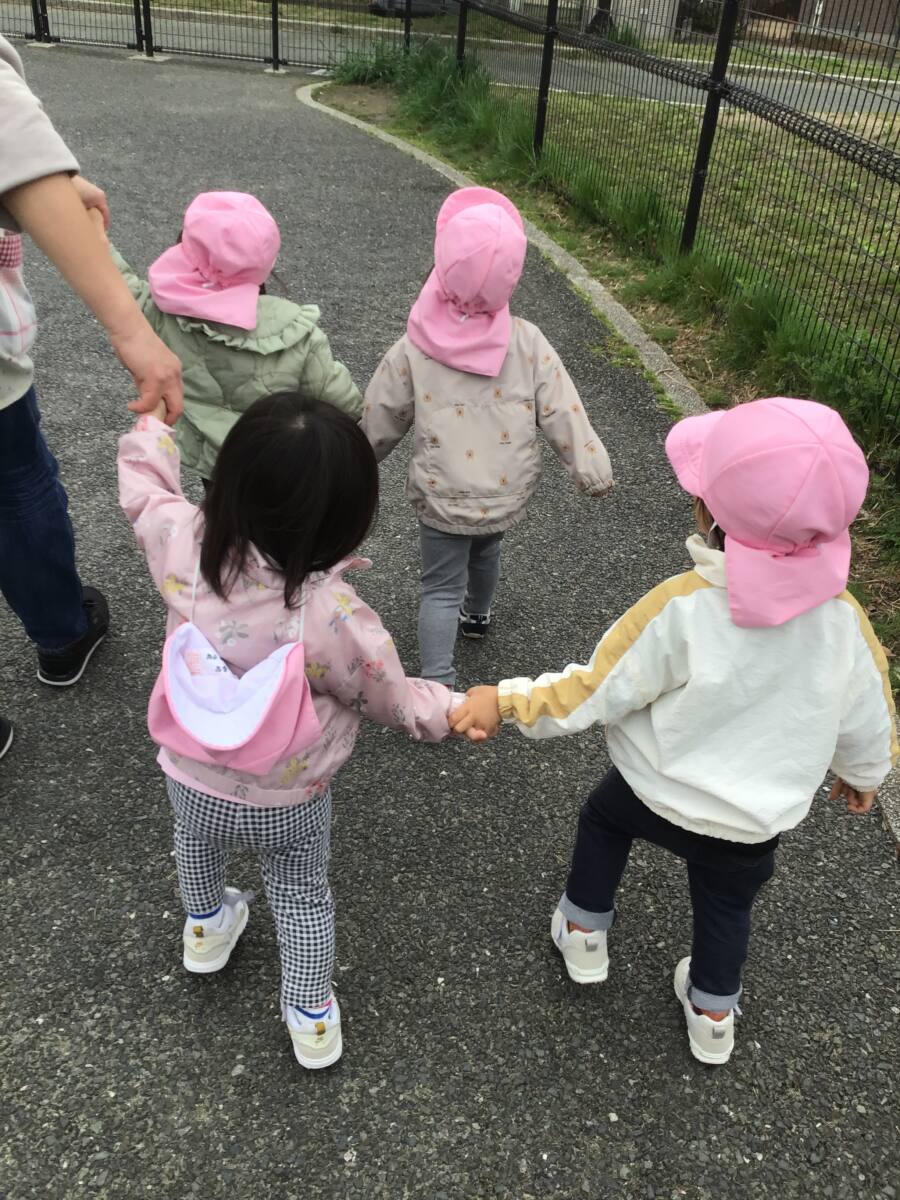 散歩車から降りるとお友達と手を繋いでニコニコで歩いていましたよ☺