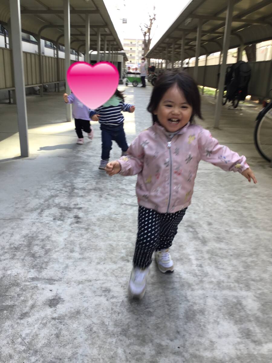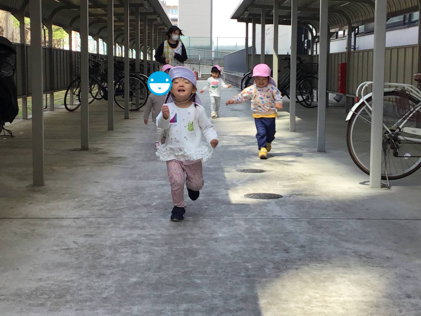 あからさんは、元気いっぱい!保育園の前でかけっこをしました😊
