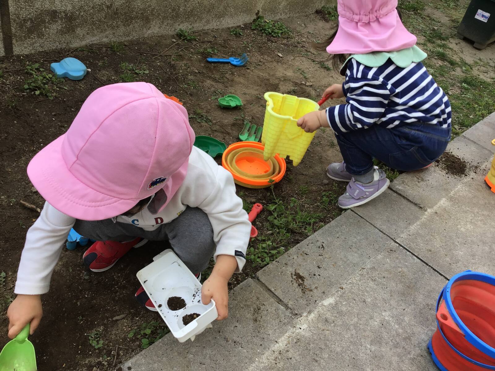 お気に入りのスコップやバケツを見つけて、じっくり遊びこんでいました👐